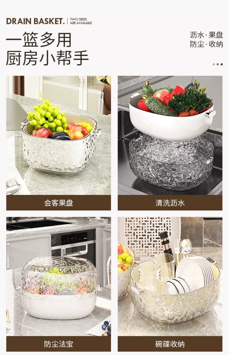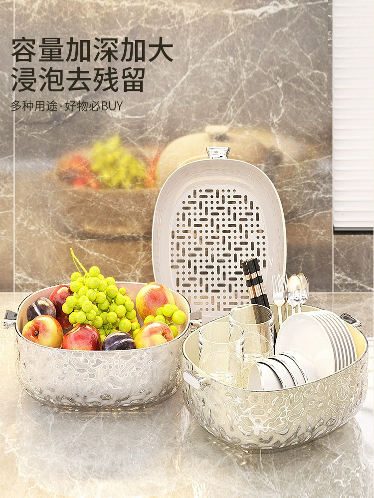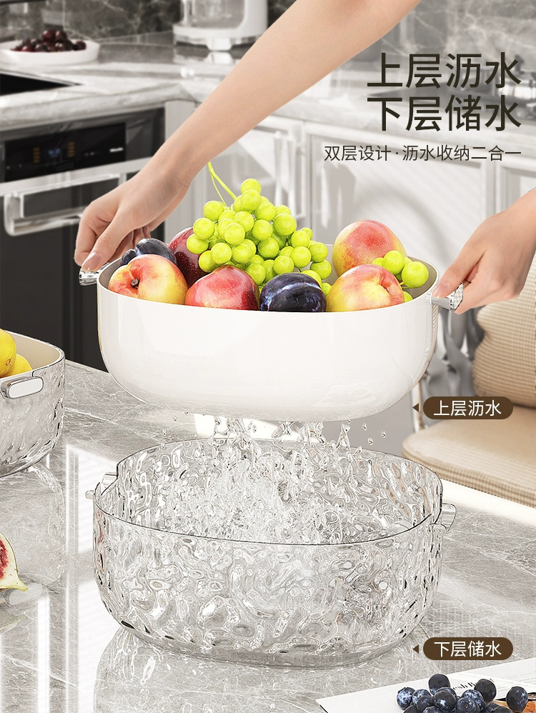 Chậu rửa rau hai tầng, giỏ thoát nước, khay đựng trái cây kiểu mới dùng trong nhà bếp đa năng, giỏ lọc Rau phòng khách, giỏ rửa rau