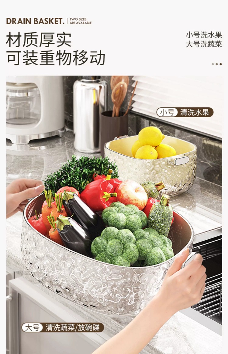 - Chậu rửa rau hai tầng, giỏ thoát nước, khay đựng trái cây kiểu mới dùng trong nhà bếp đa năng, giỏ lọc Rau phòng khách, giỏ rửa rau