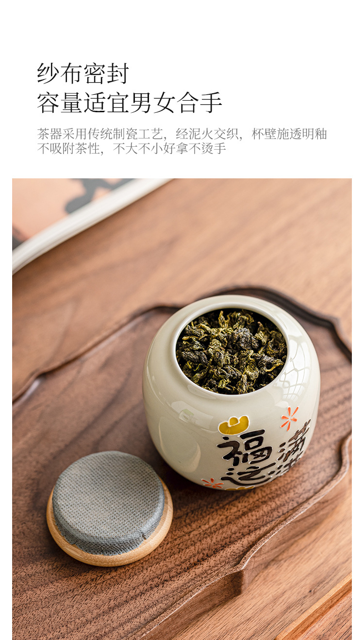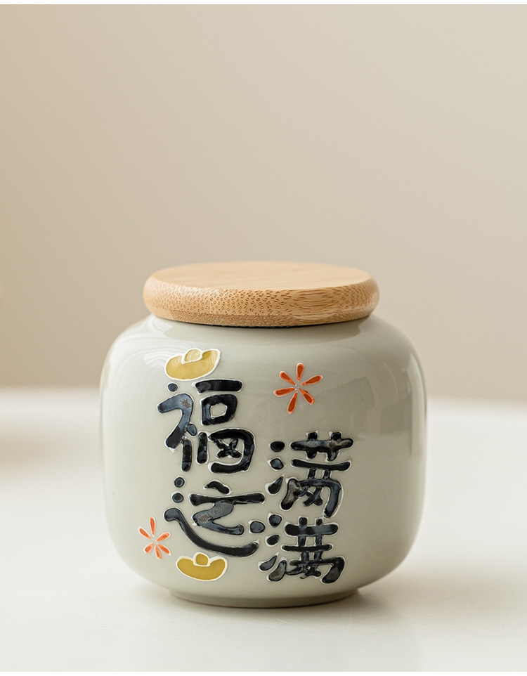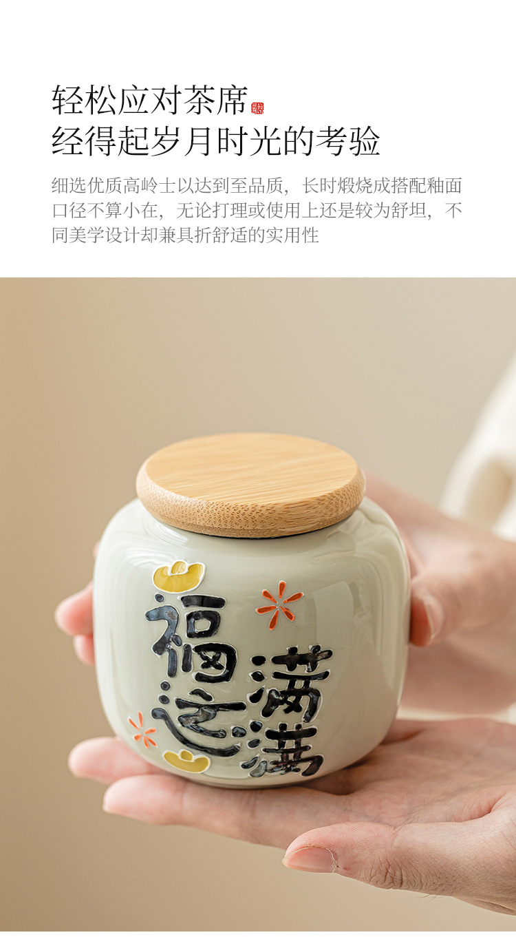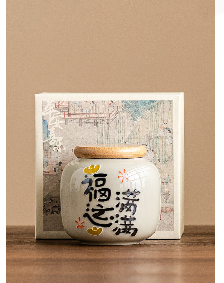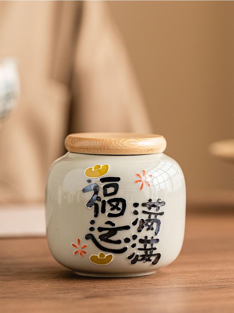 Chậu trà đầy may mắn chạm khắc vẽ tay, bình trà gốm sứ nhỏ, bình rỗng, bình chống ẩm kín gia dụng, bình bảo quản