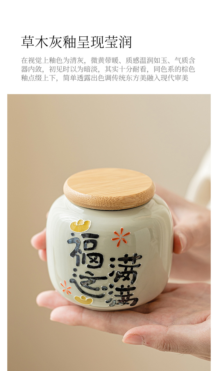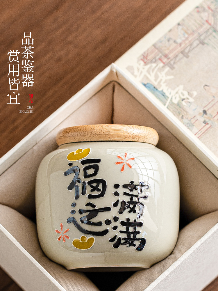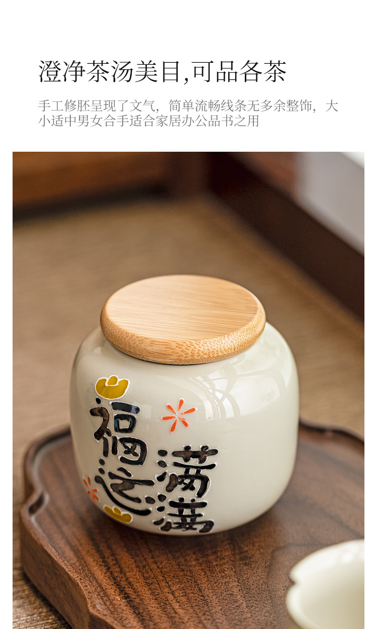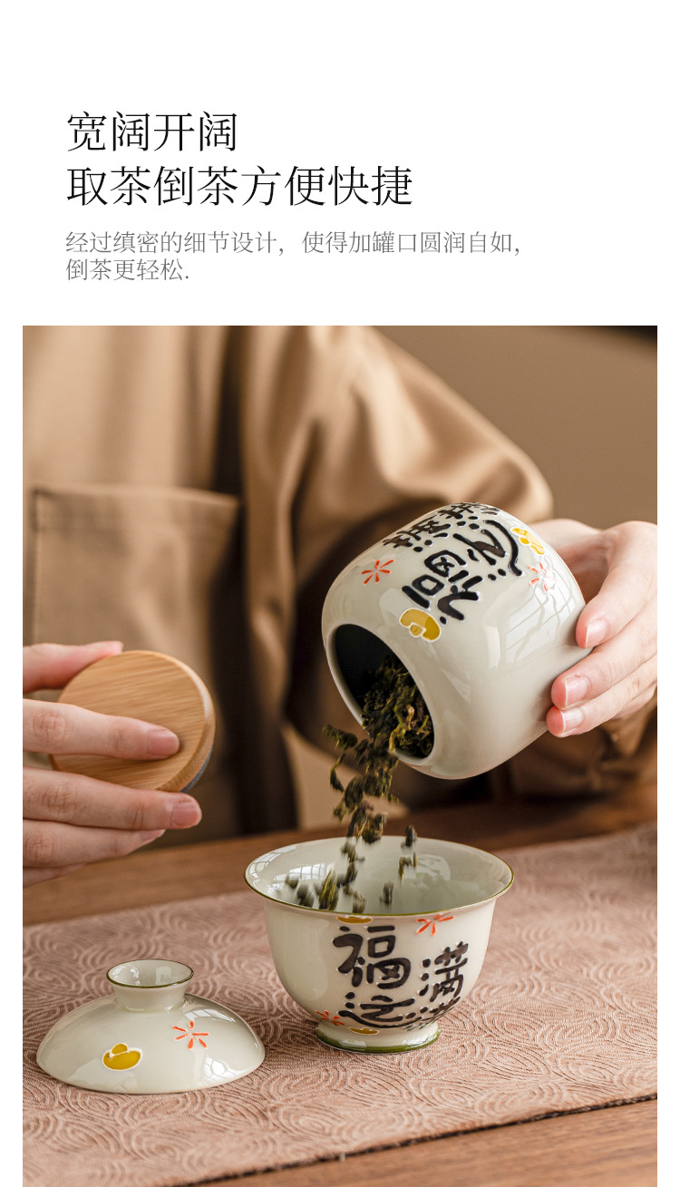 Chậu trà đầy may mắn chạm khắc vẽ tay, bình trà gốm sứ nhỏ, bình rỗng, bình chống ẩm kín gia dụng, bình bảo quản