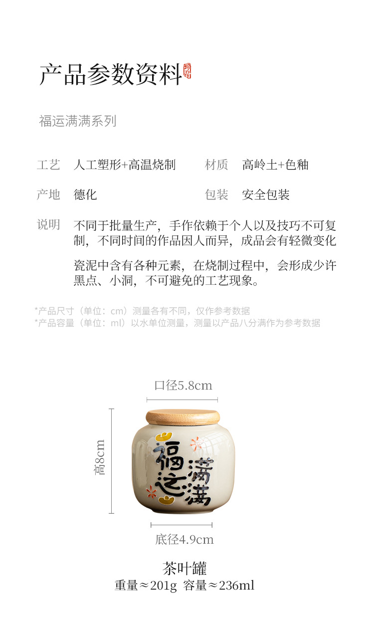 - Chậu trà đầy may mắn chạm khắc vẽ tay, bình trà gốm sứ nhỏ, bình rỗng, bình chống ẩm kín gia dụng, bình bảo quản