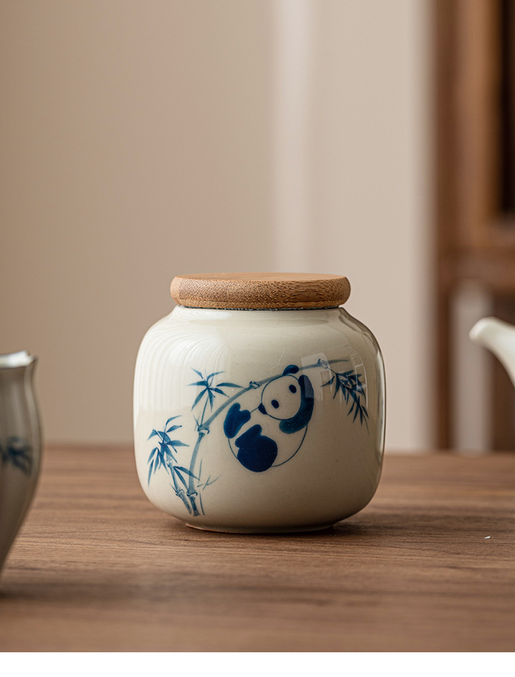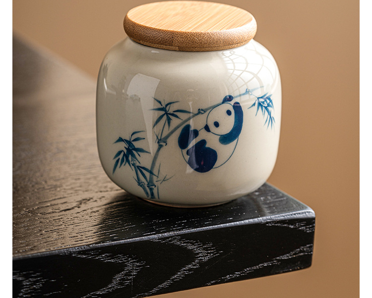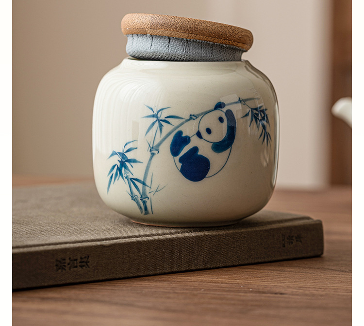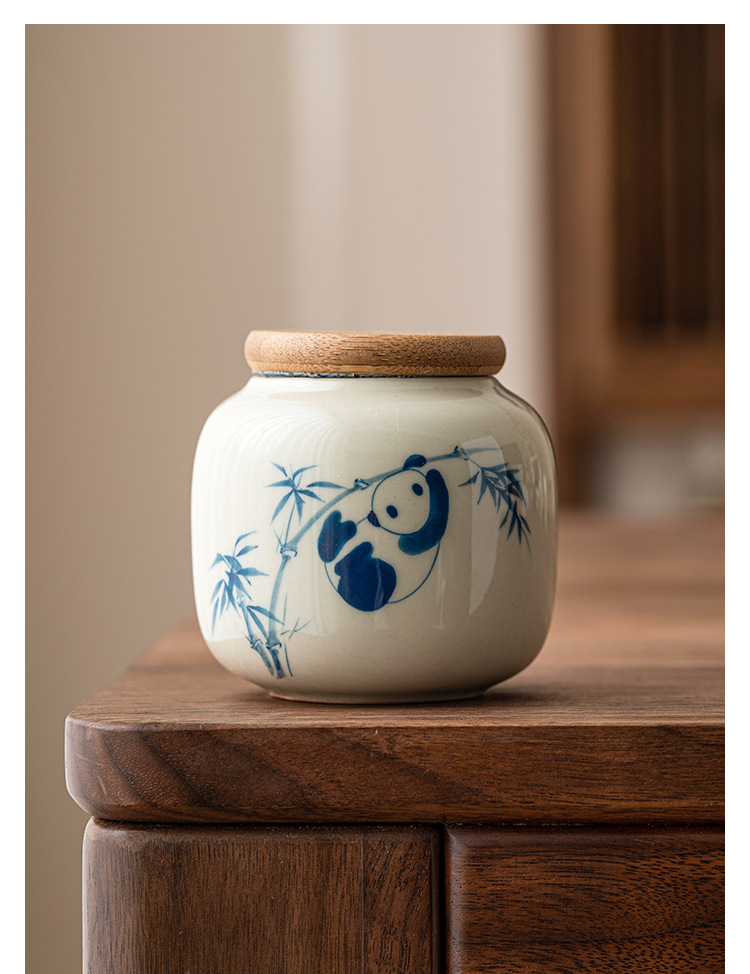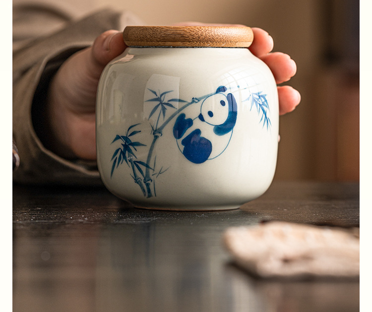 - Chậu trà gấu trúc vẽ tay, bình đựng đồ mini chống ẩm sáng tạo cỡ nhỏ cầm tay tinh tế cao cấp gốm sứ