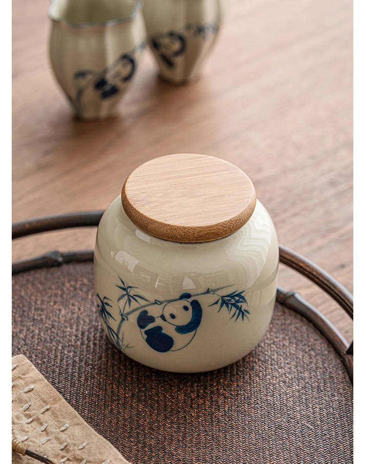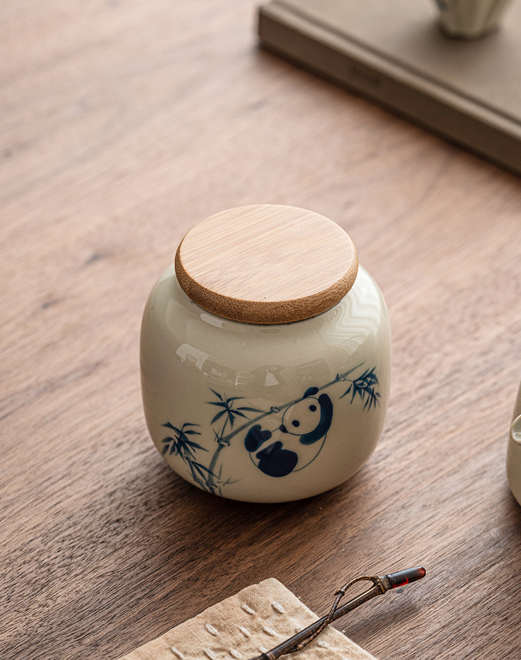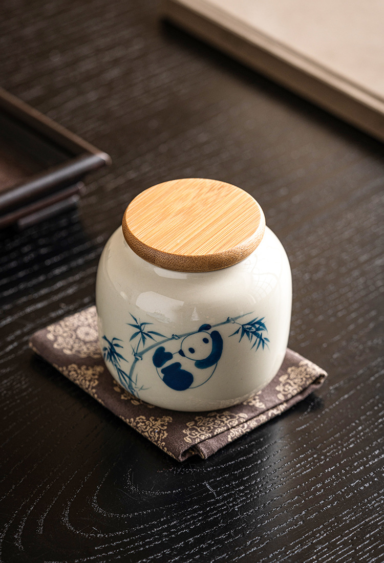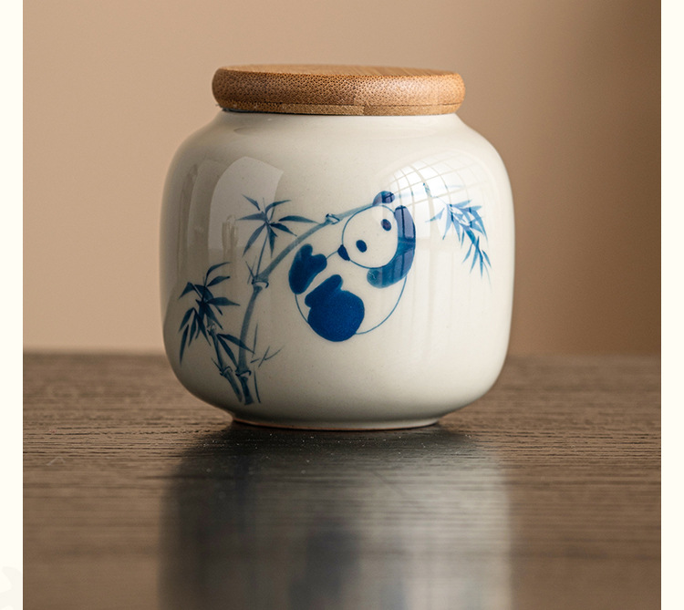 Chậu trà gấu trúc vẽ tay, bình đựng đồ mini chống ẩm sáng tạo cỡ nhỏ cầm tay tinh tế cao cấp gốm sứ