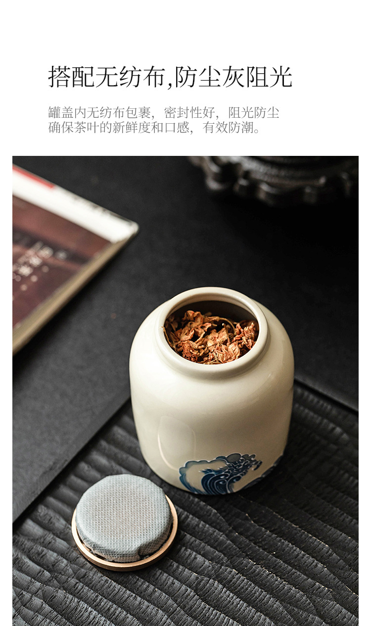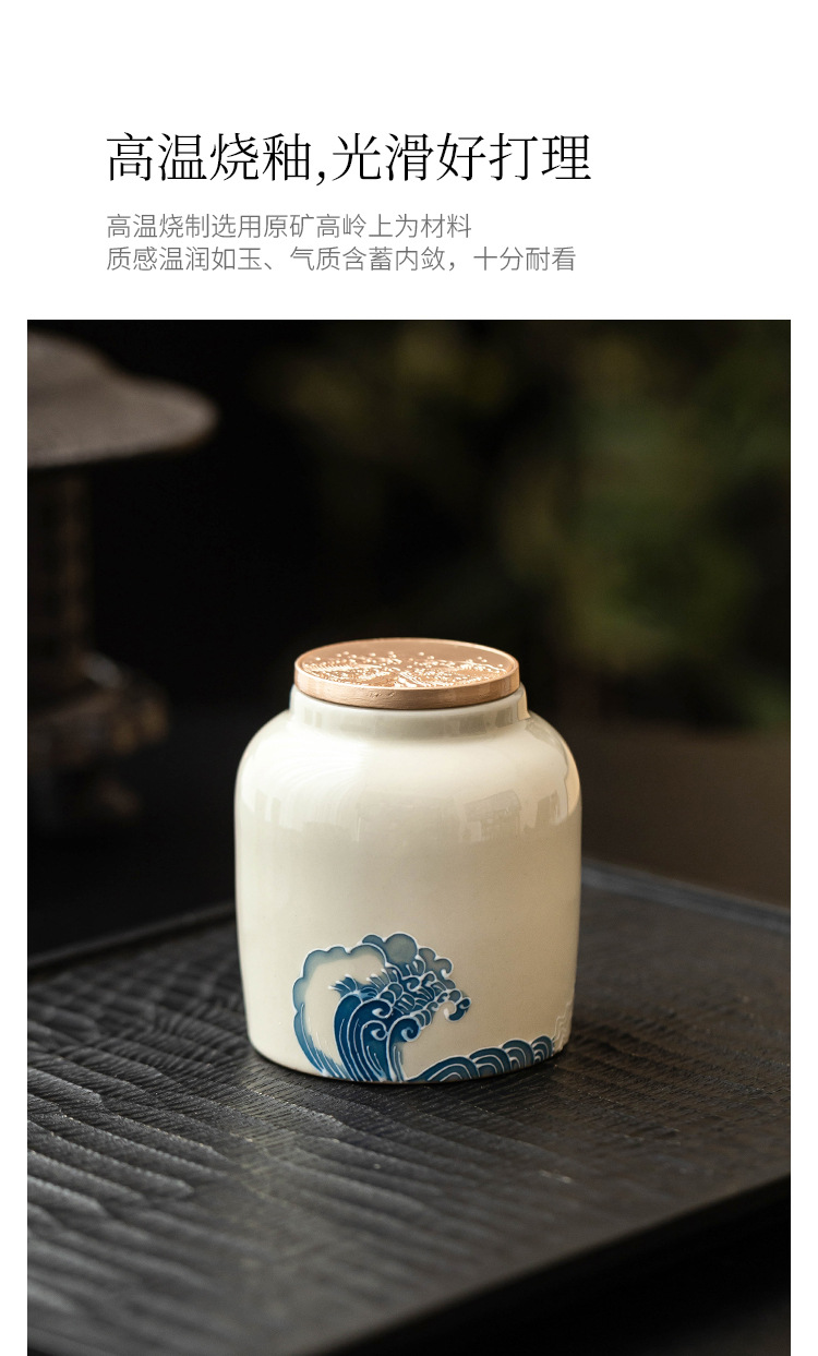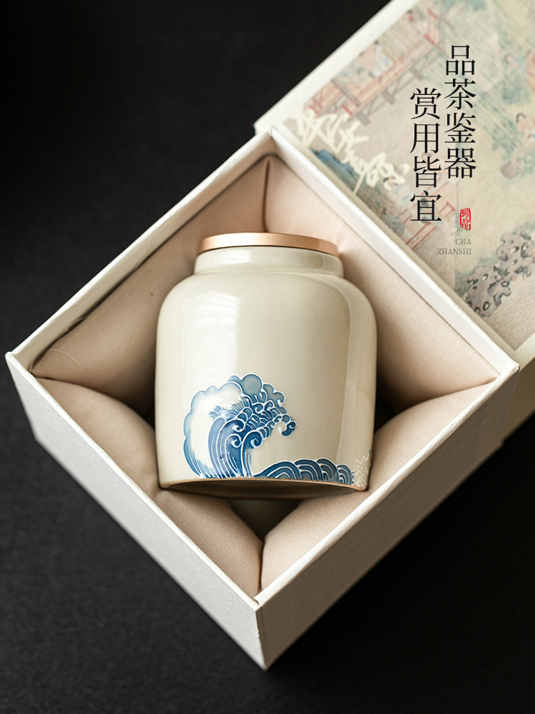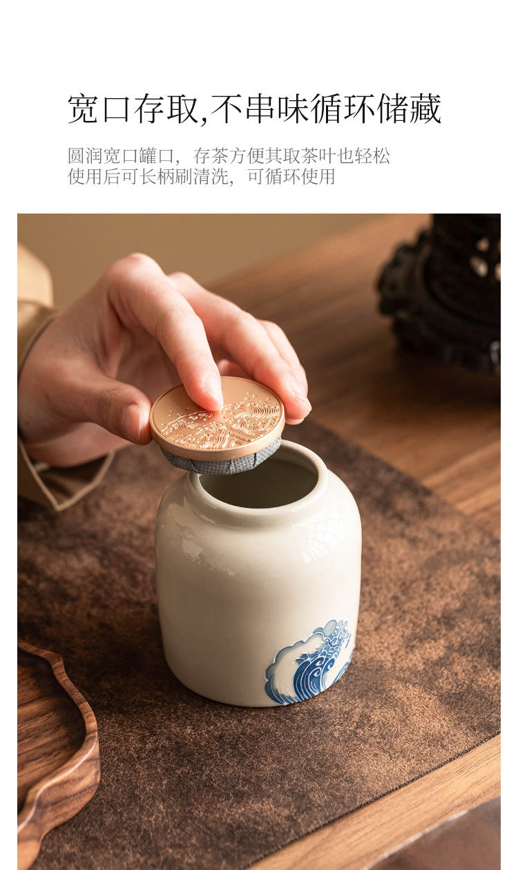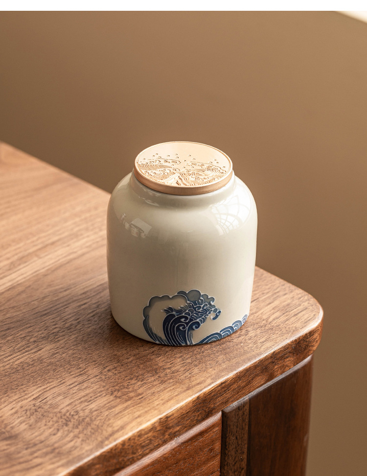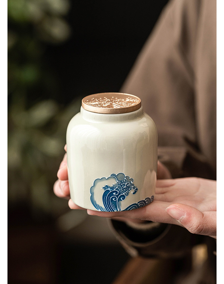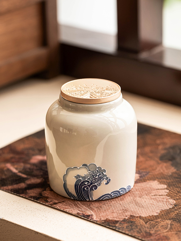 Chậu trà sóng biển xếp chồng, bình đựng đồ, bình kín gia dụng, hộp đựng trà chống ẩm kiểu Trung Quốc mới, bình trà thanh lịch