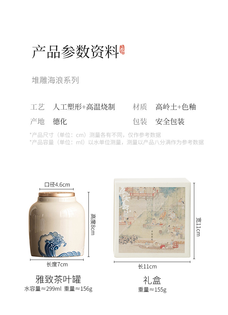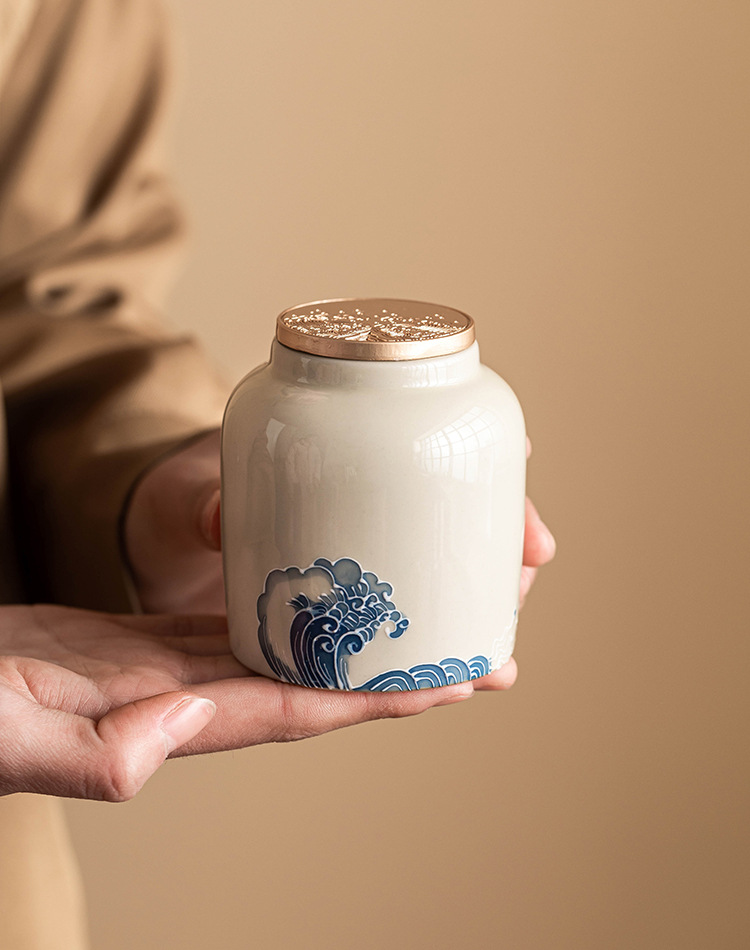 - Chậu trà sóng biển xếp chồng, bình đựng đồ, bình kín gia dụng, hộp đựng trà chống ẩm kiểu Trung Quốc mới, bình trà thanh lịch