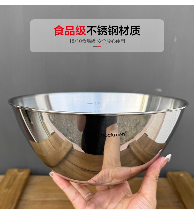 Chén inox Chockmen18/10 mỏng, dùng làm chén trái cây, chén salad, chén nướng, chén nấu ăn, chén rửa rau củ, kích thước 18/22/27cm