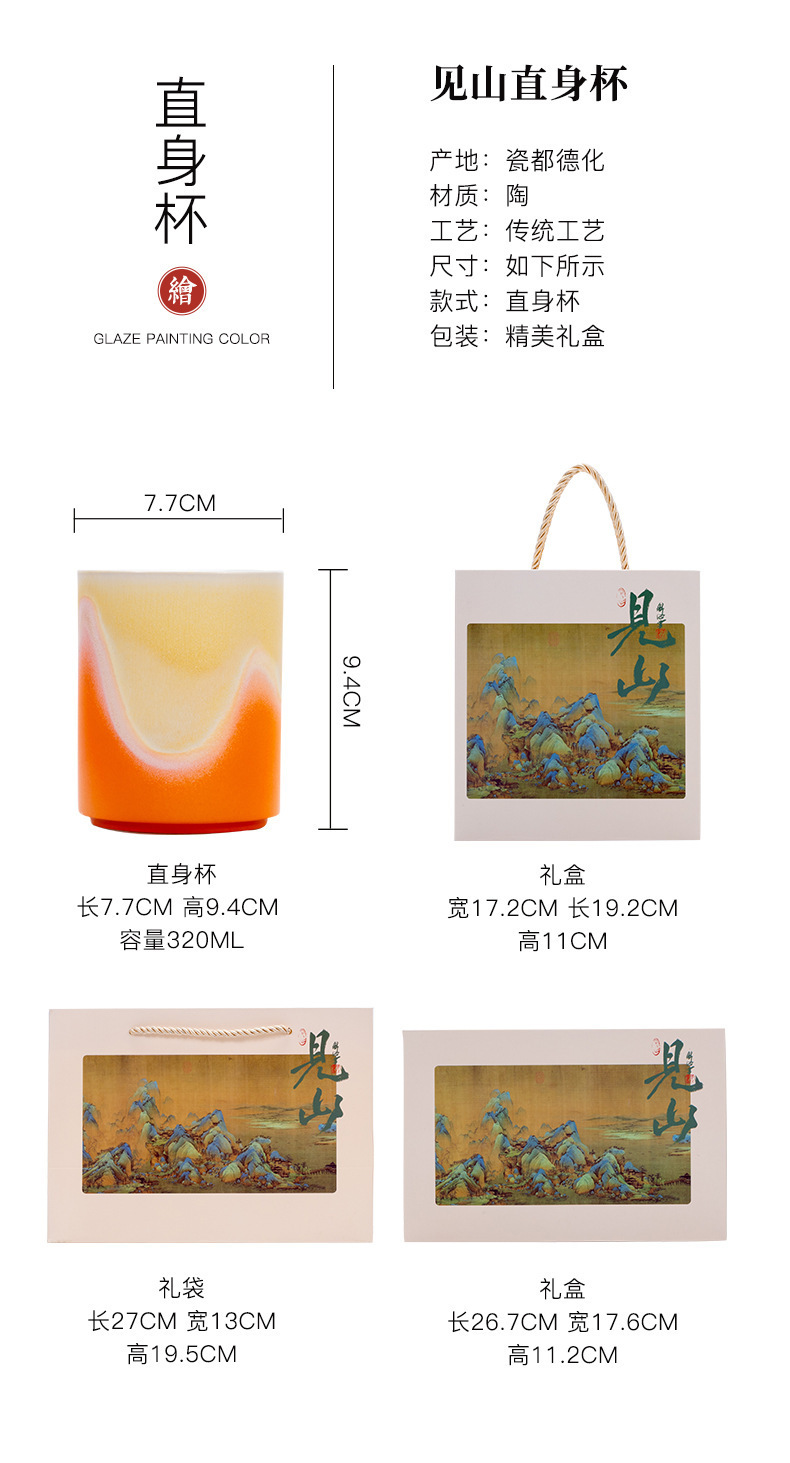 Chén nước thủy triều văn hóa và sáng tạo, cốc trà thẳng, cốc sứ, cốc văn phòng kinh doanh, quà tặng