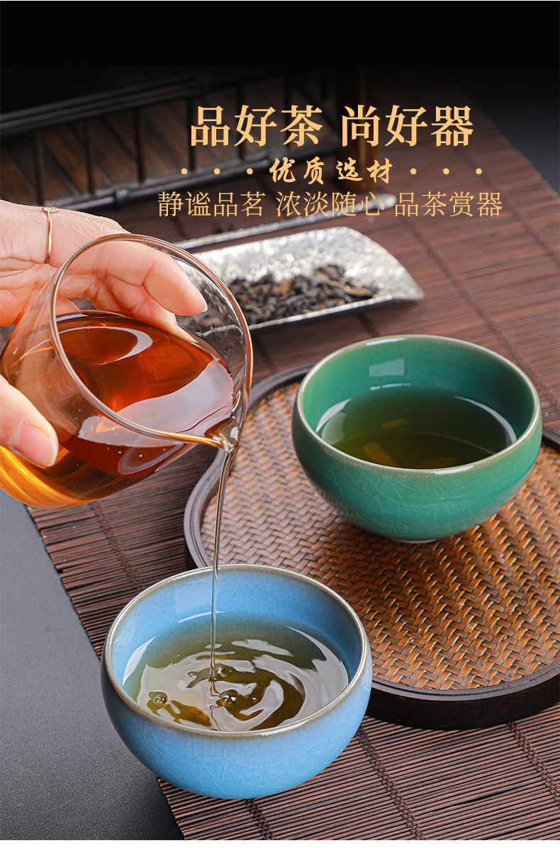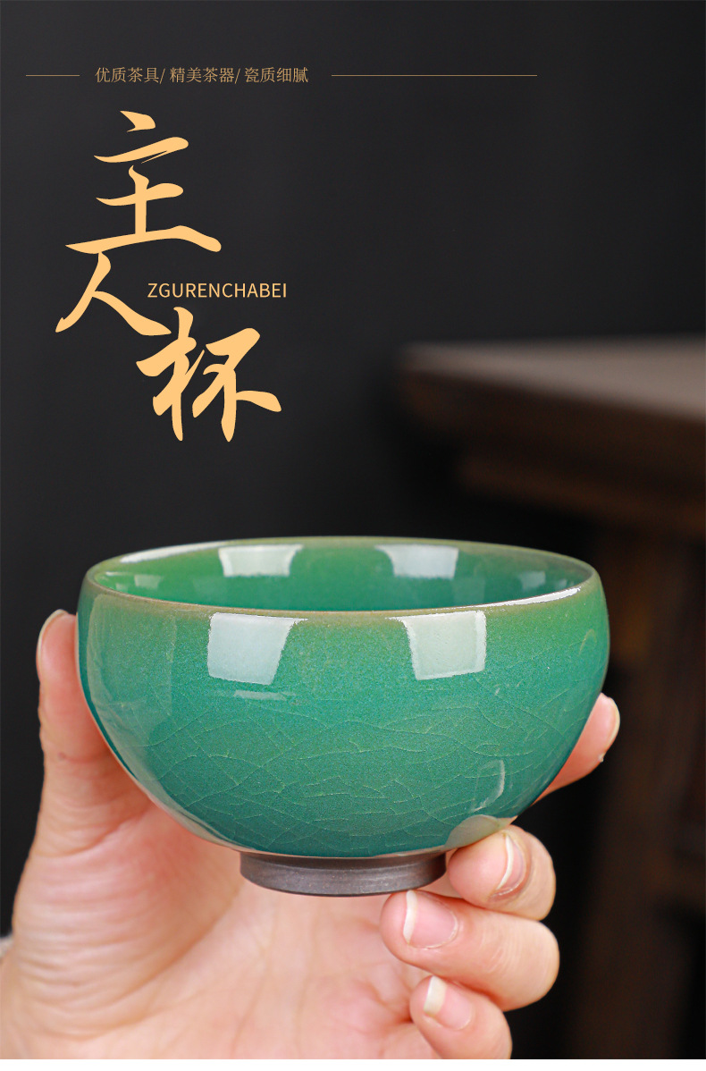 - Chén trà ánh sáng hồ thủ công của Su Tianpei, cốc đơn của chủ nhân, chén trà gốm sứ, bộ trà Kung Fu bằng sắt men ngọc