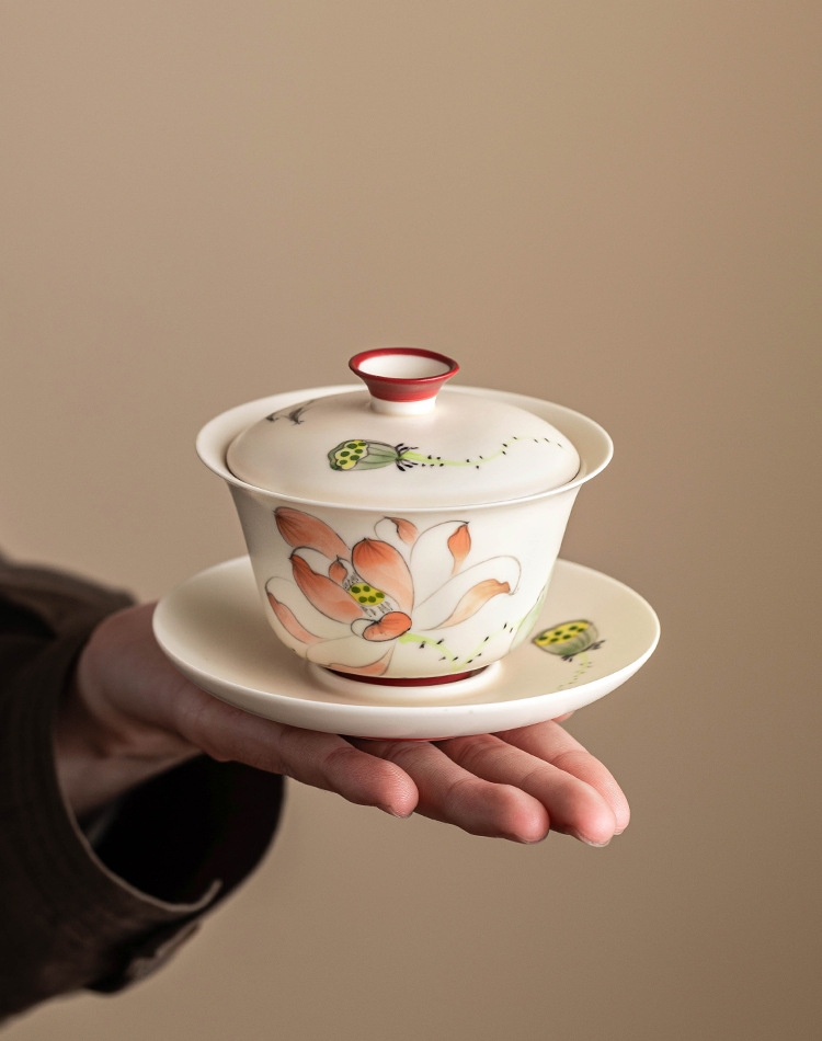 - Chén trà chén trà chén hoa sen vẽ tay gốm sứ gia dụng cỡ lớn bộ trà nữ giá trị cao chống bỏng
