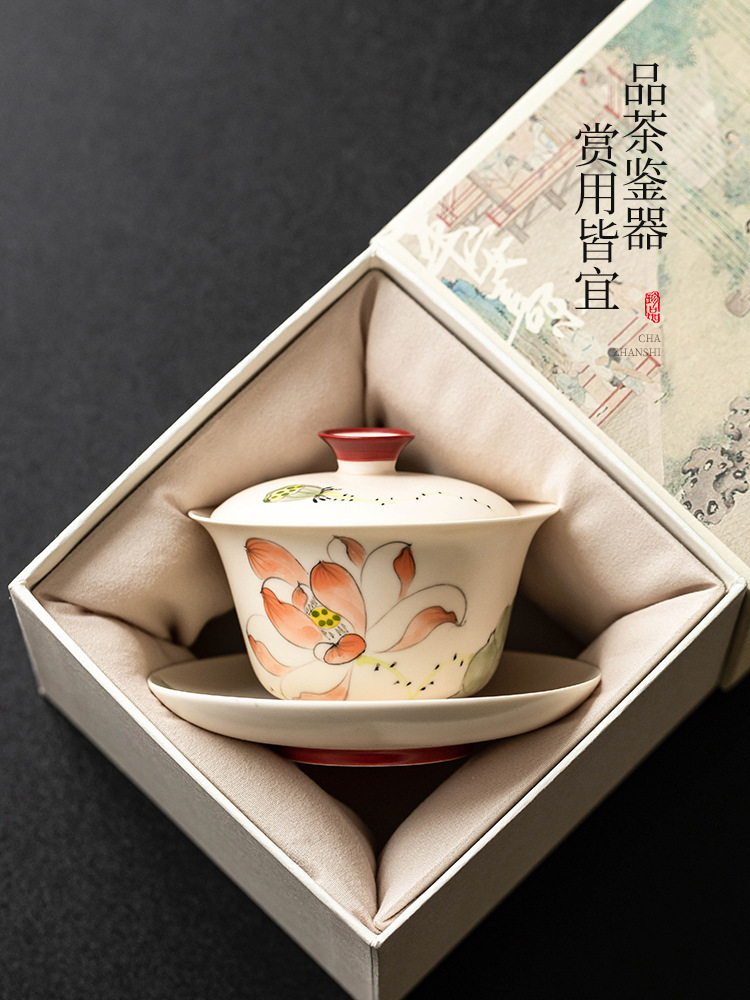 Chén trà chén trà chén hoa sen vẽ tay gốm sứ gia dụng cỡ lớn bộ trà nữ giá trị cao chống bỏng