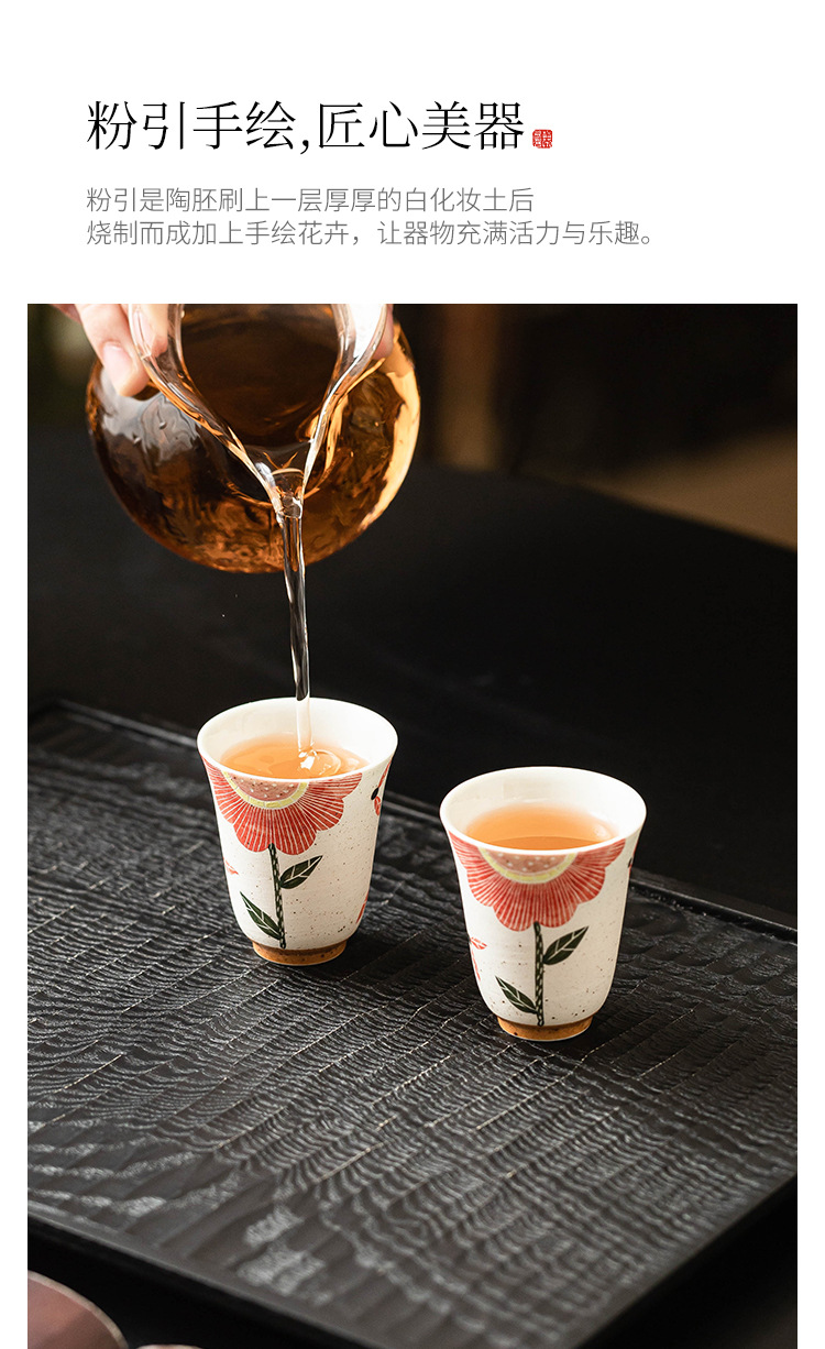 Chén trà hương gốm sứ chạm khắc màu hồng, cốc chủ nhân đãi khách gia dụng, cốc cao cấp đơn, bộ trà kungfu, chén trà