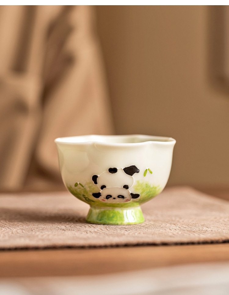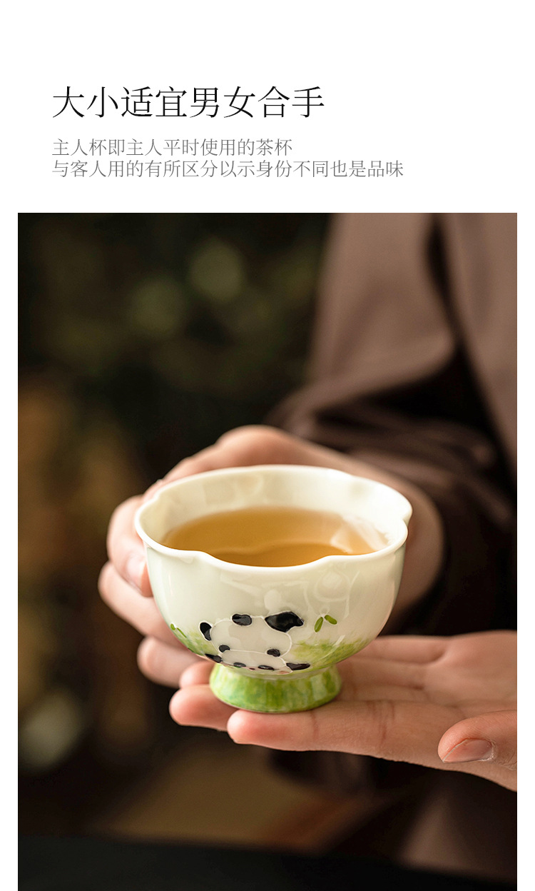 - Chén trà Kung Fu màu xám cỏ, chén vẽ tay, chén chủ nhân hình gấu trúc chạm khắc, chén đặc biệt uống trà, chén trà, chén đơn