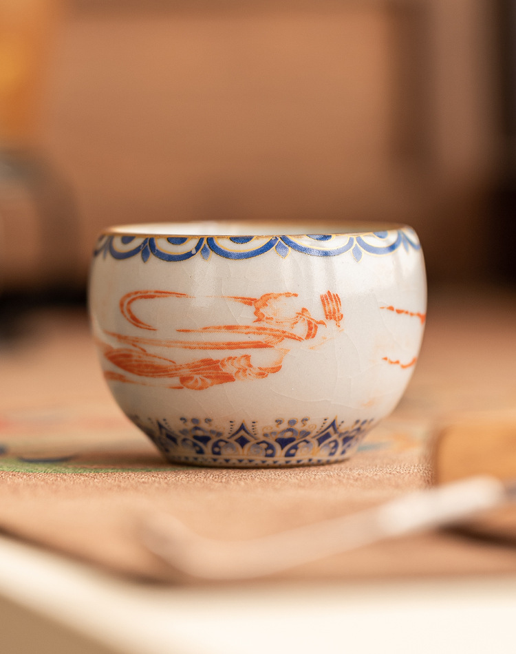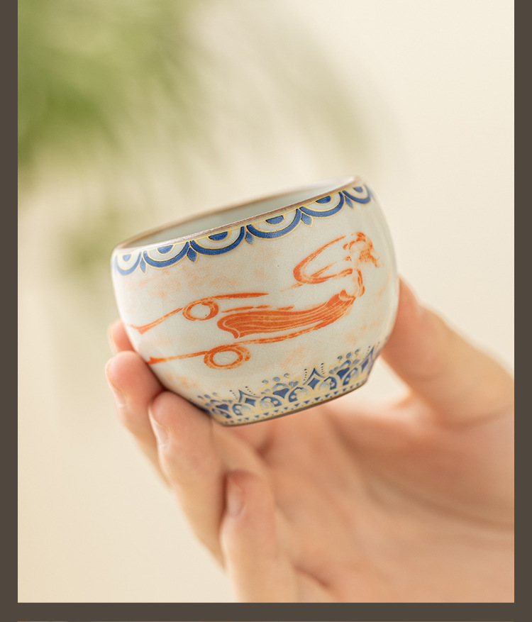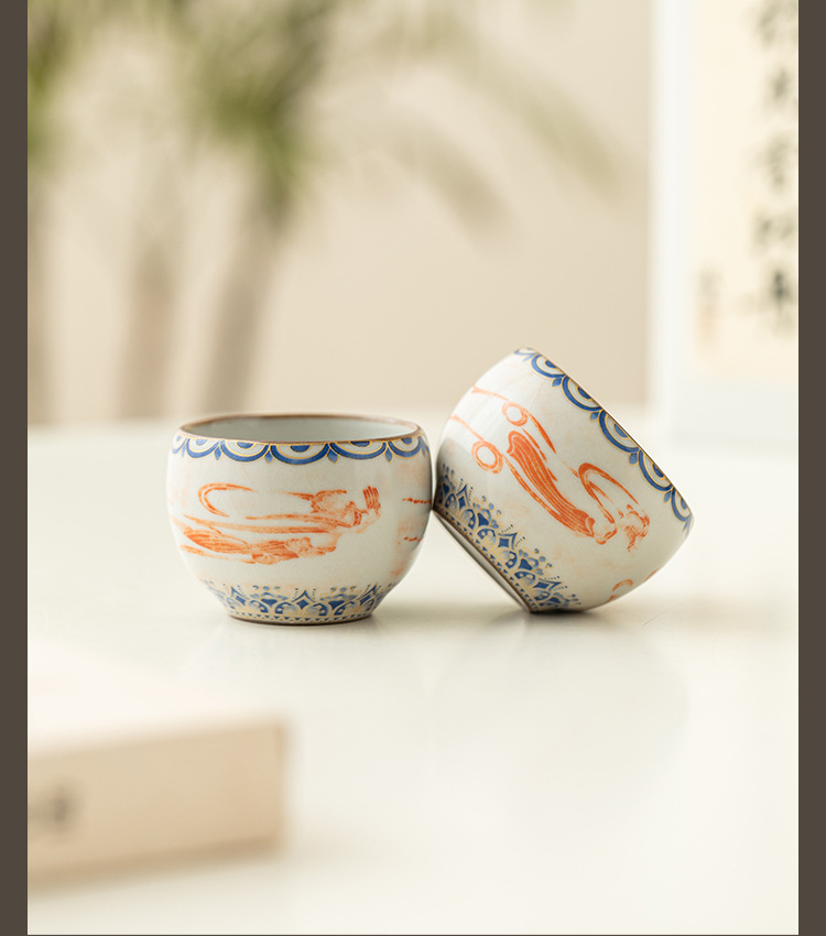 Chén trà nhỏ văn hóa và sáng tạo Đôn Hoàng, cốc khách, cốc uống trà có thể được giữ trong lò Ru, bộ trà Kung Fu Trung Quốc, cốc trà đơn