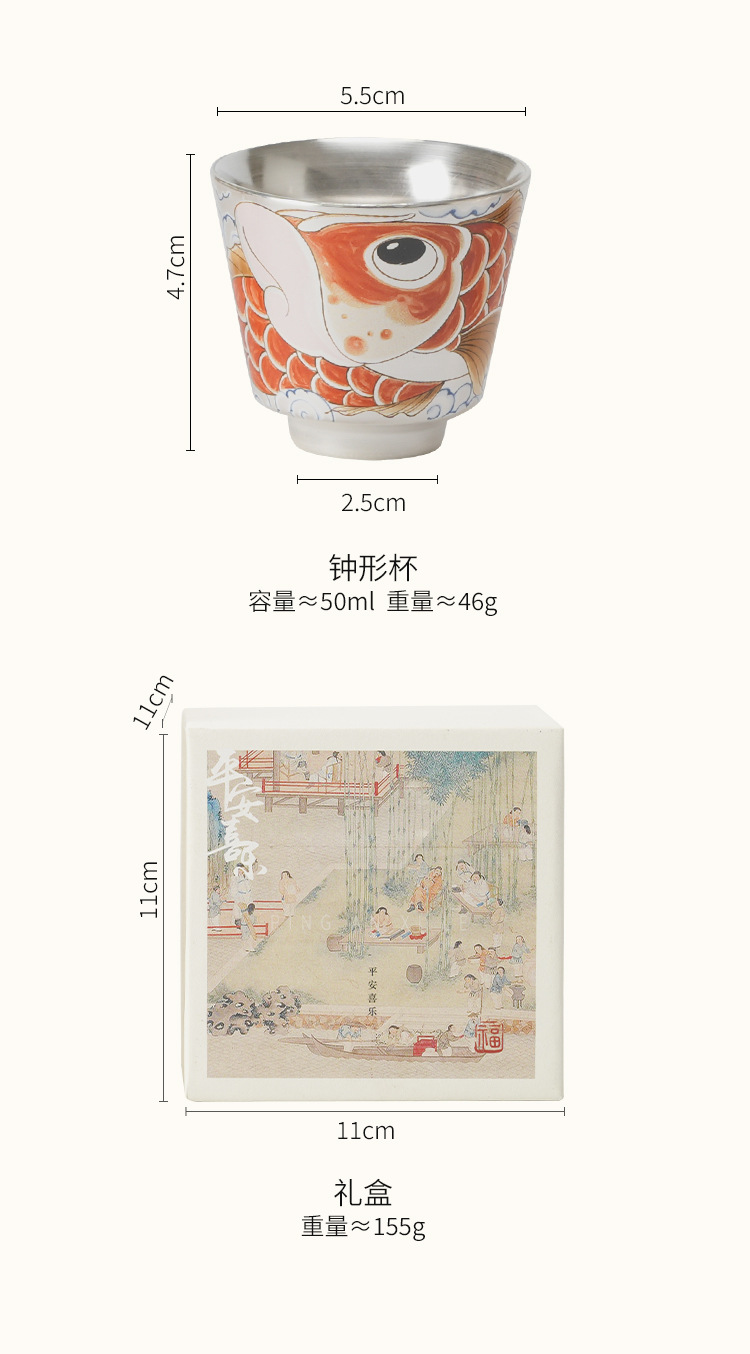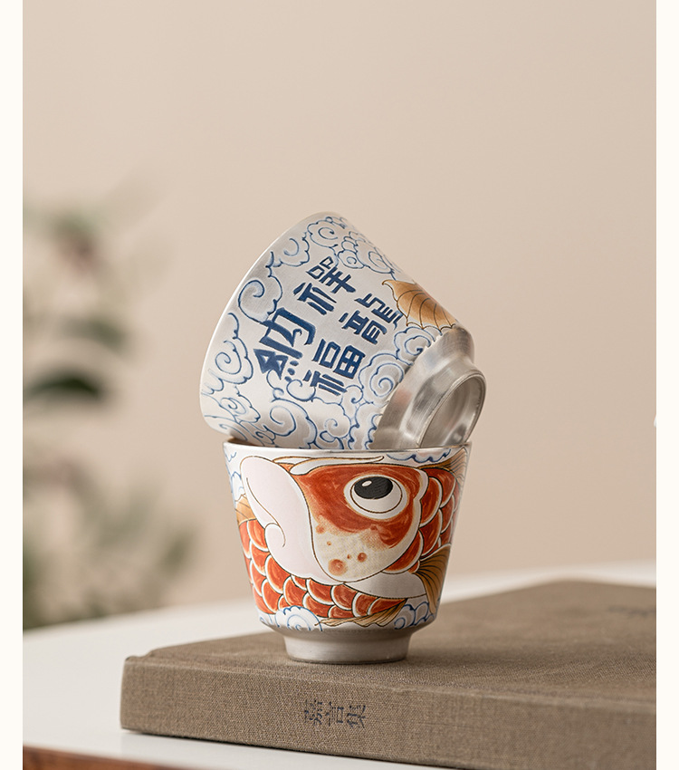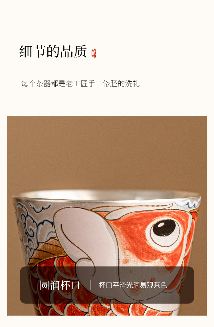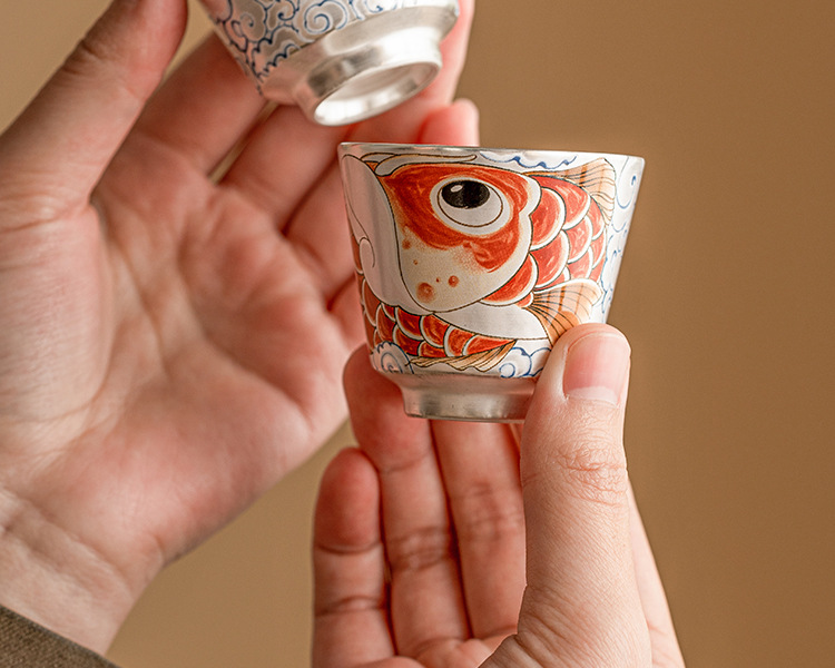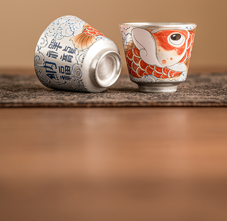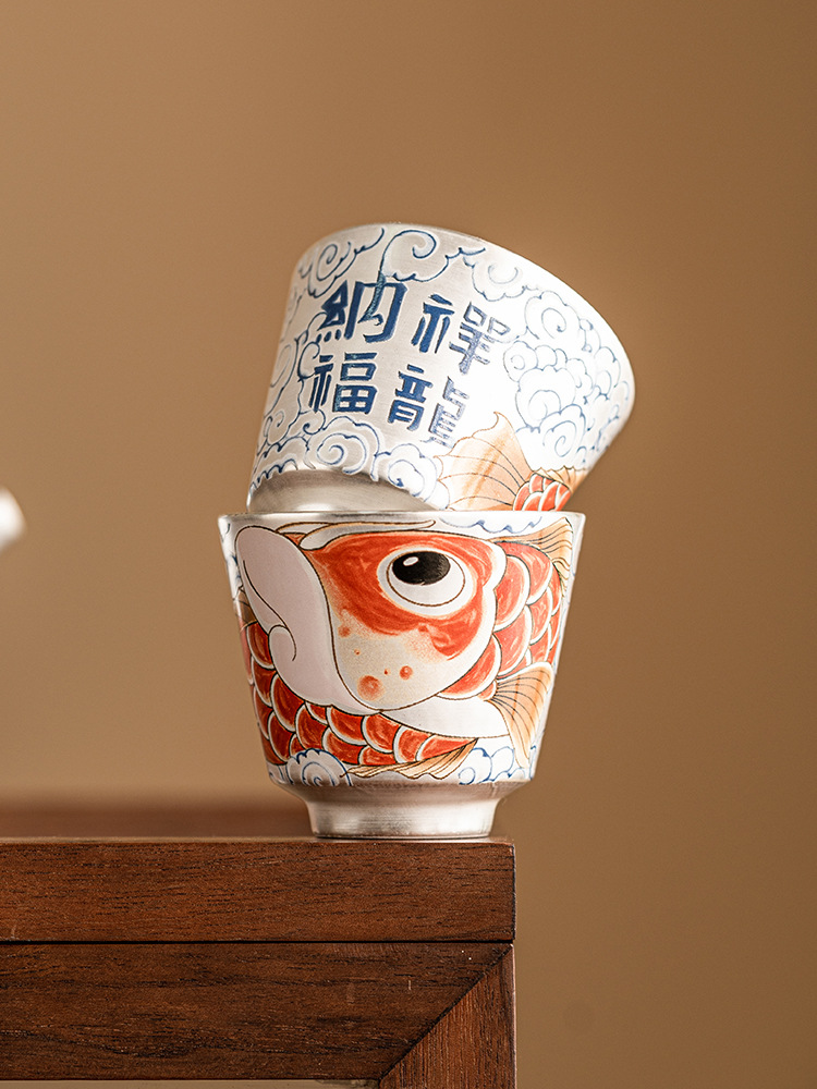 - Chén trà sứ mạ bạc Xinxianglong Nafu 999 cốc chủ nhân cốc đơn Bộ trà cá nhân cao cấp
