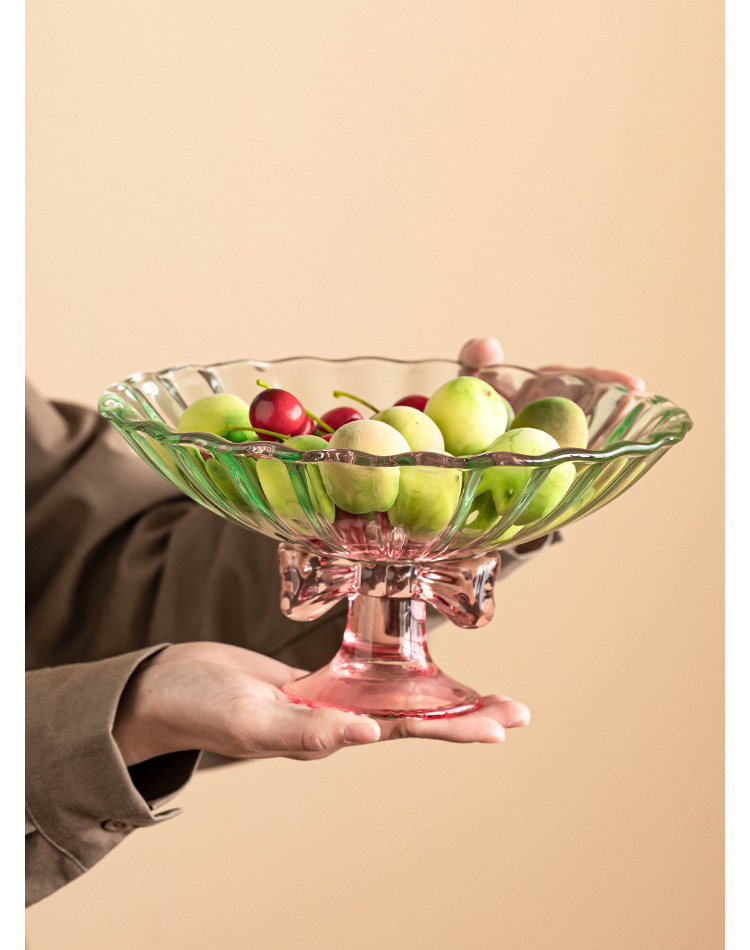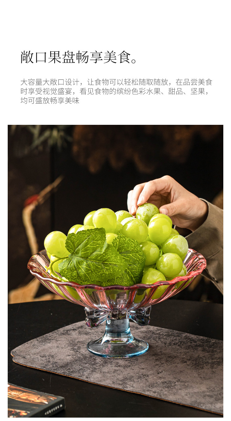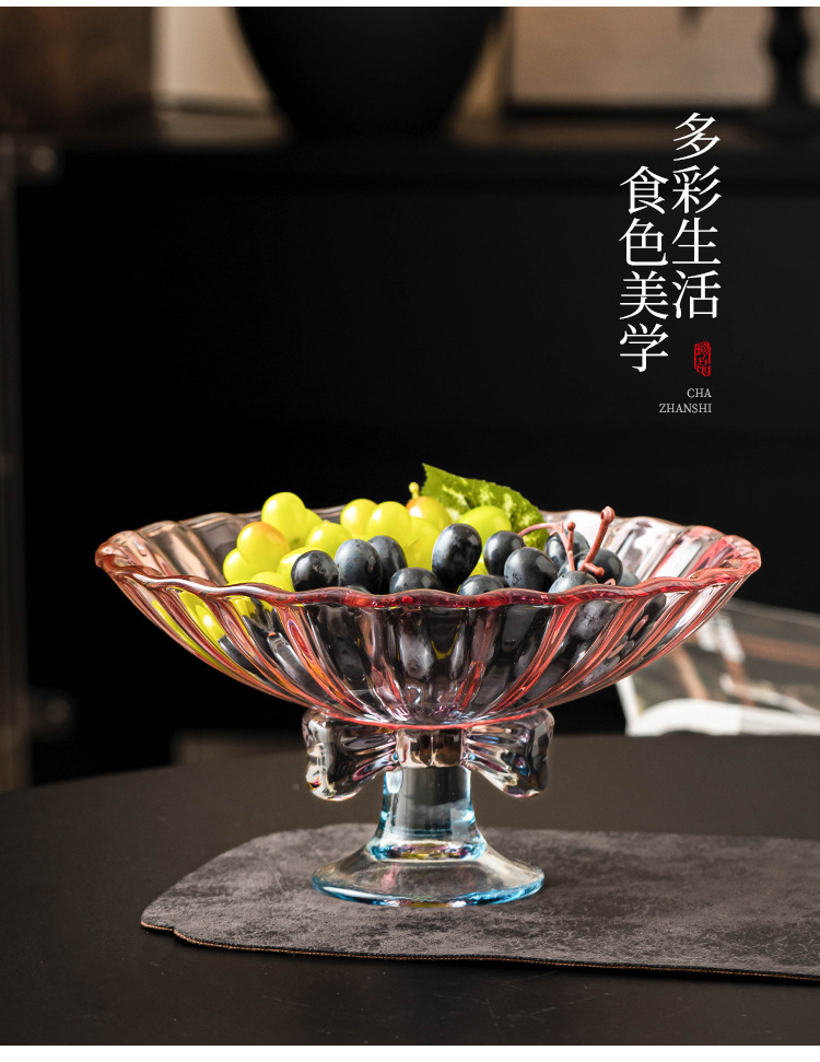 - Cổ cao thắt nút đĩa trái cây lớn, bàn cà phê phòng khách, đĩa giải khát đồ ăn nhẹ gia dụng, đĩa bày trí giá trị cao, đĩa đựng trái cây thủy tinh, đĩa cống