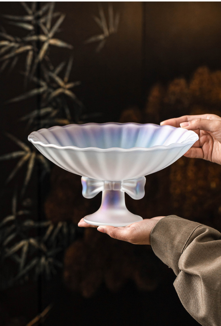 - Cổ cao thắt nút thủy tinh pha lê khay trái cây bàn trà phòng khách khay đựng đồ uống gia dụng khay đựng đồ ăn nhẹ giá trị cao khay đựng trái cây cỡ lớn