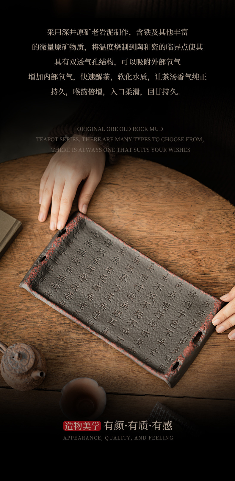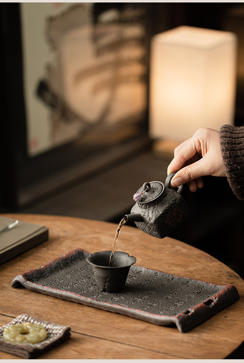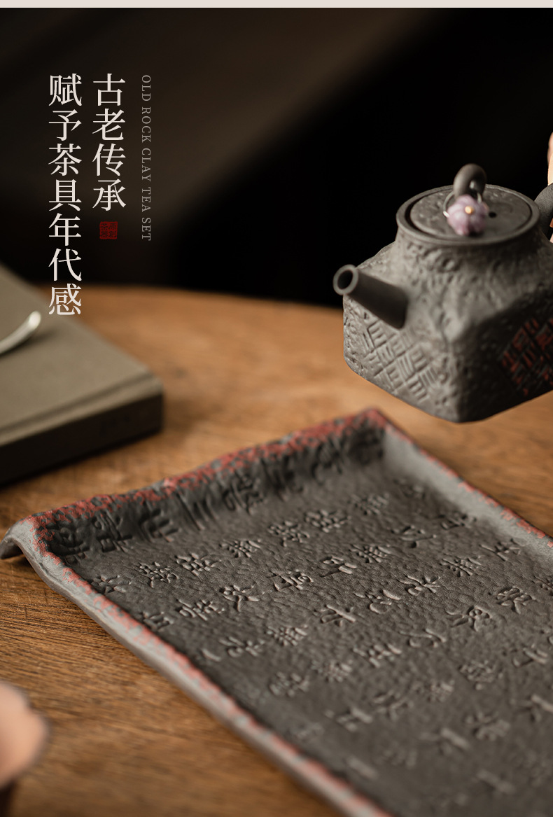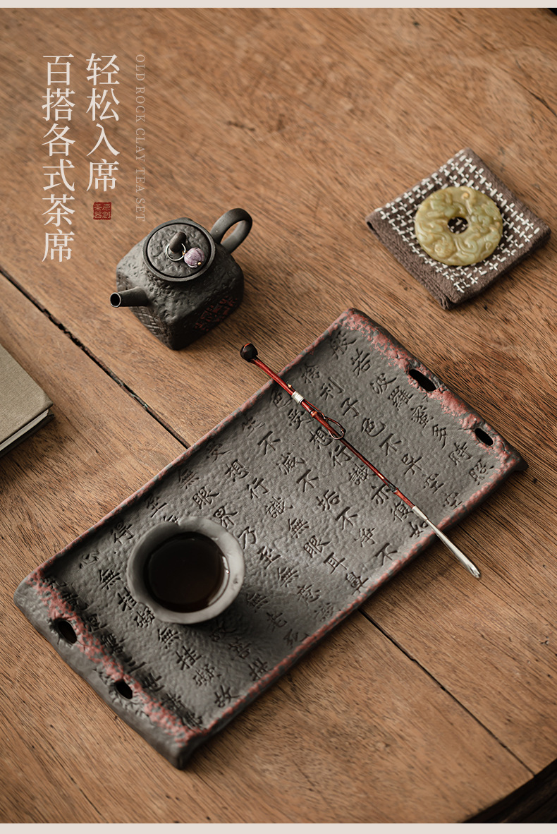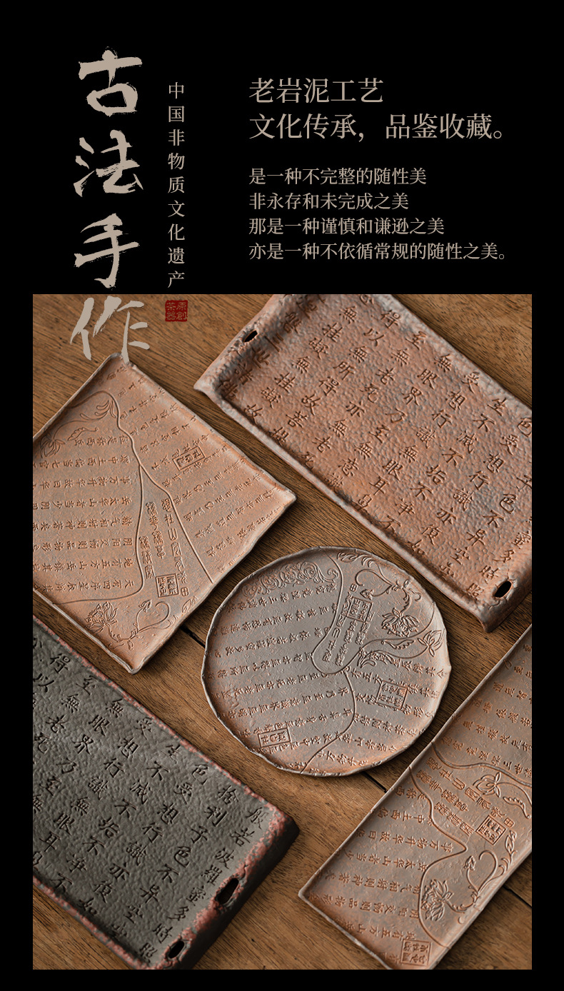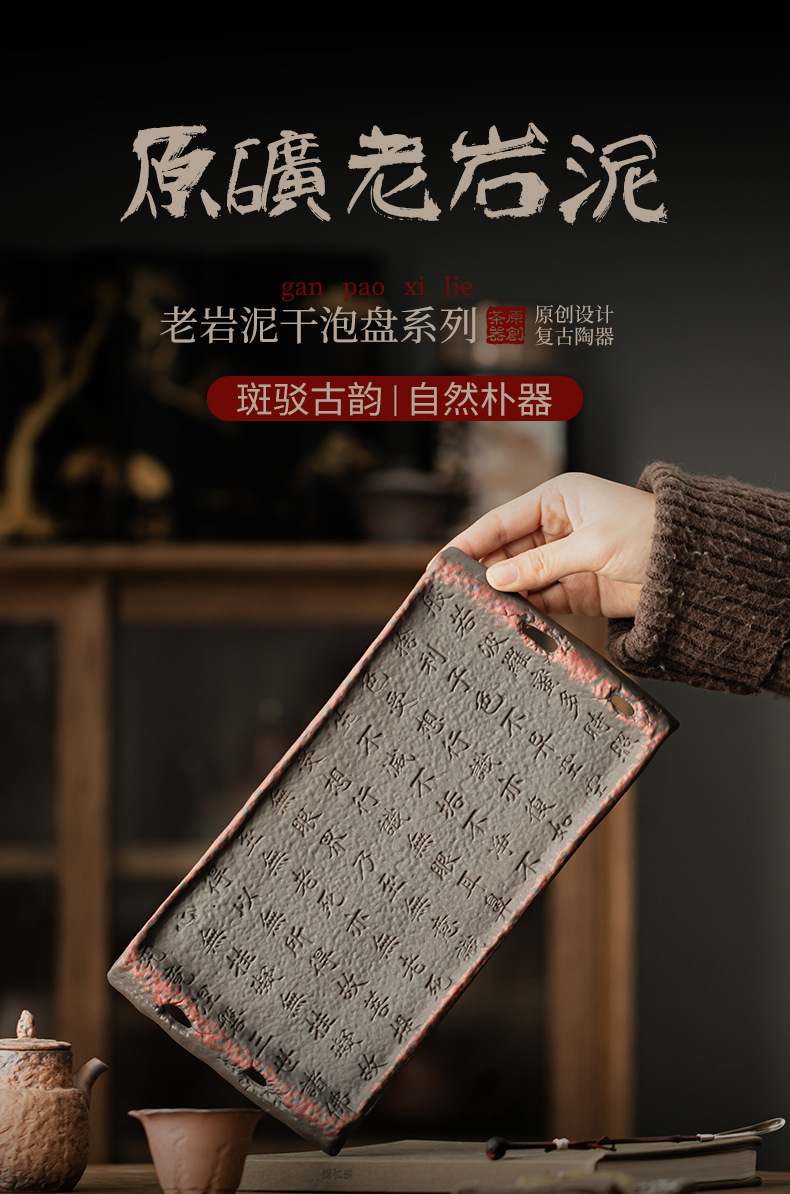 - Cổ đá bùn Zhuo bùn kinh bình đựng nước gốm thô khay xốp khô khay đựng đồ trà kiểu Trung Quốc cổ điển phụ kiện khay trà bàn trà