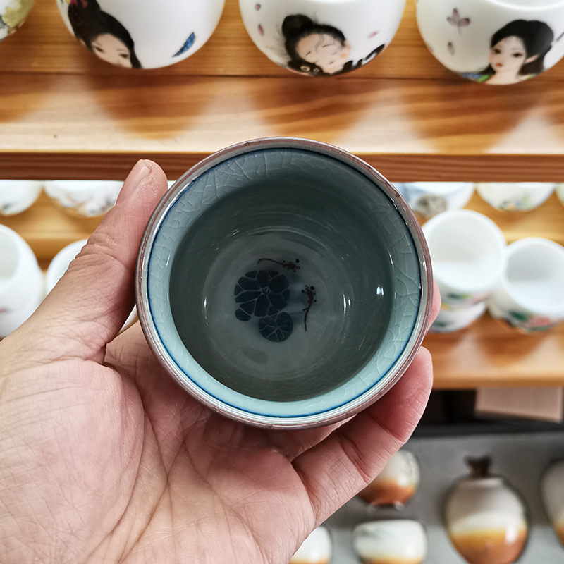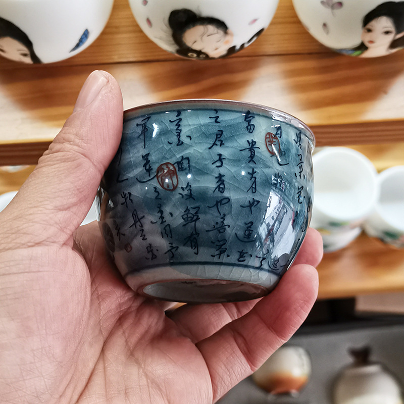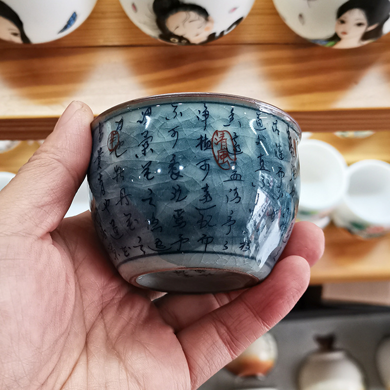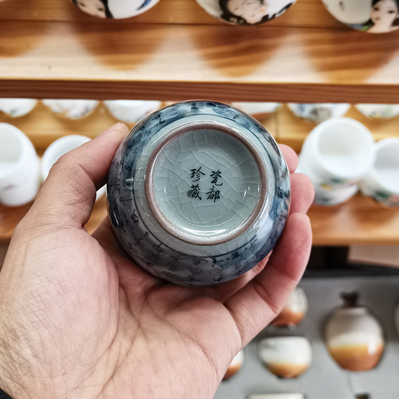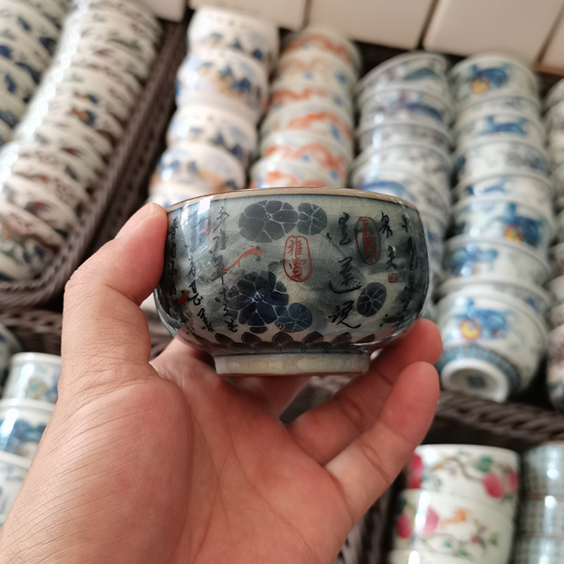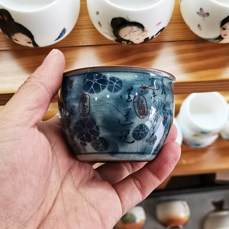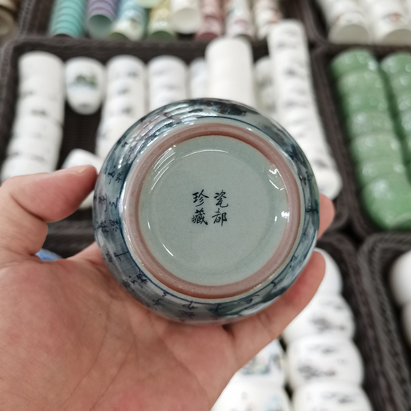 - Cổ giả gốm chủ cốc Cảnh Đức Trấn gốm sứ màu xanh và trắng ép tay cốc nam đặc biệt cốc trà cao cấp cốc trà