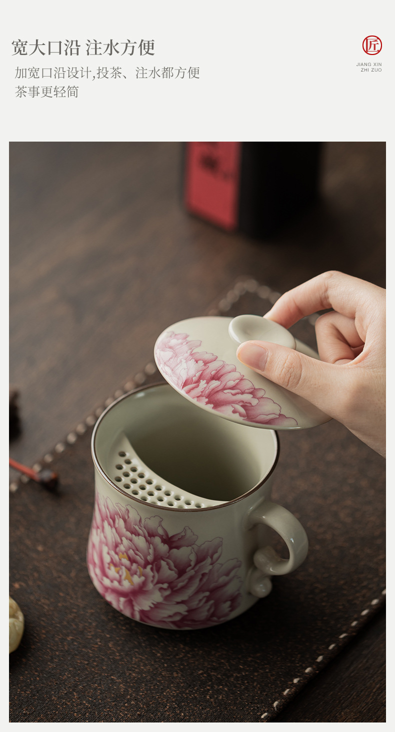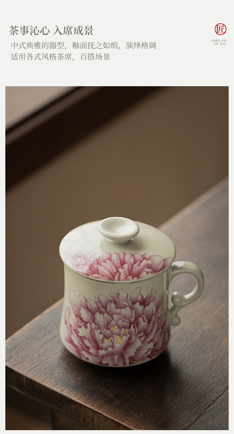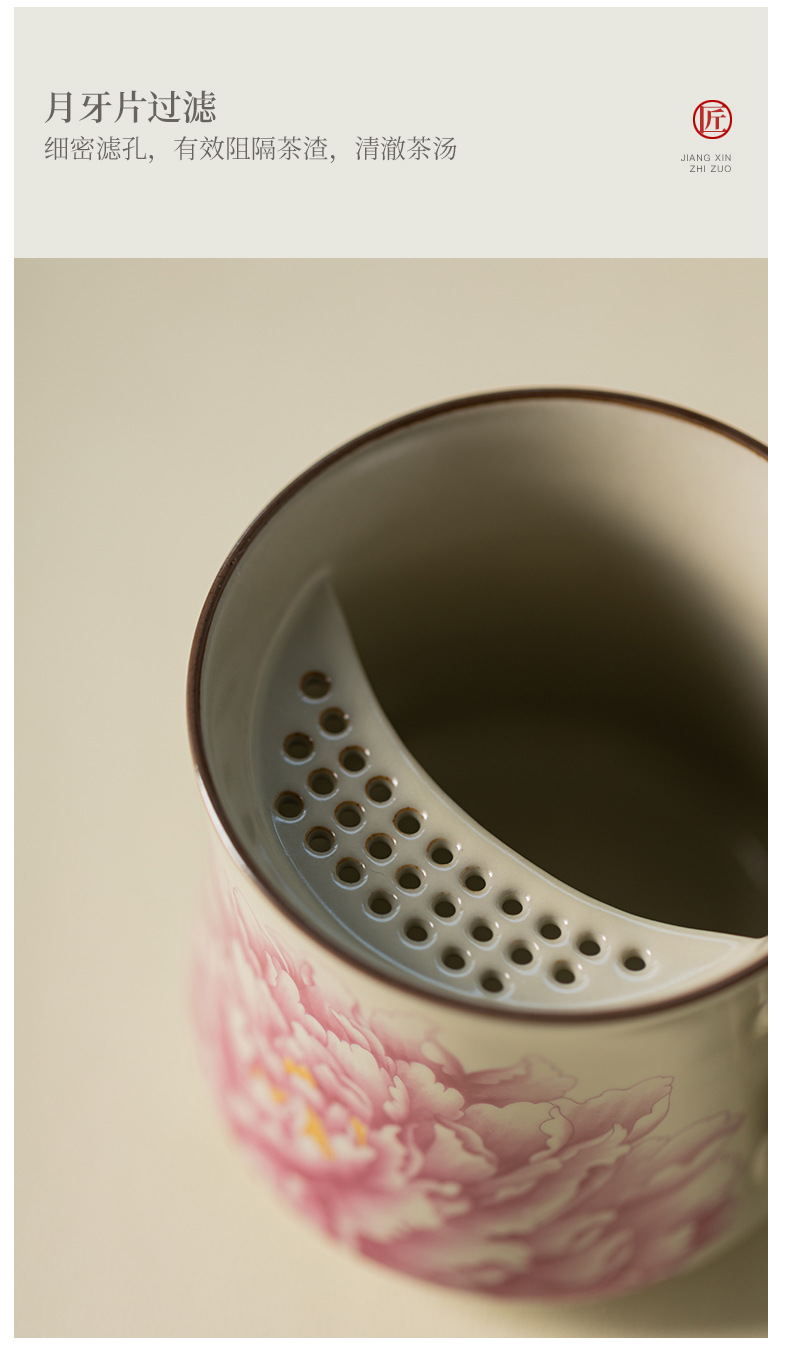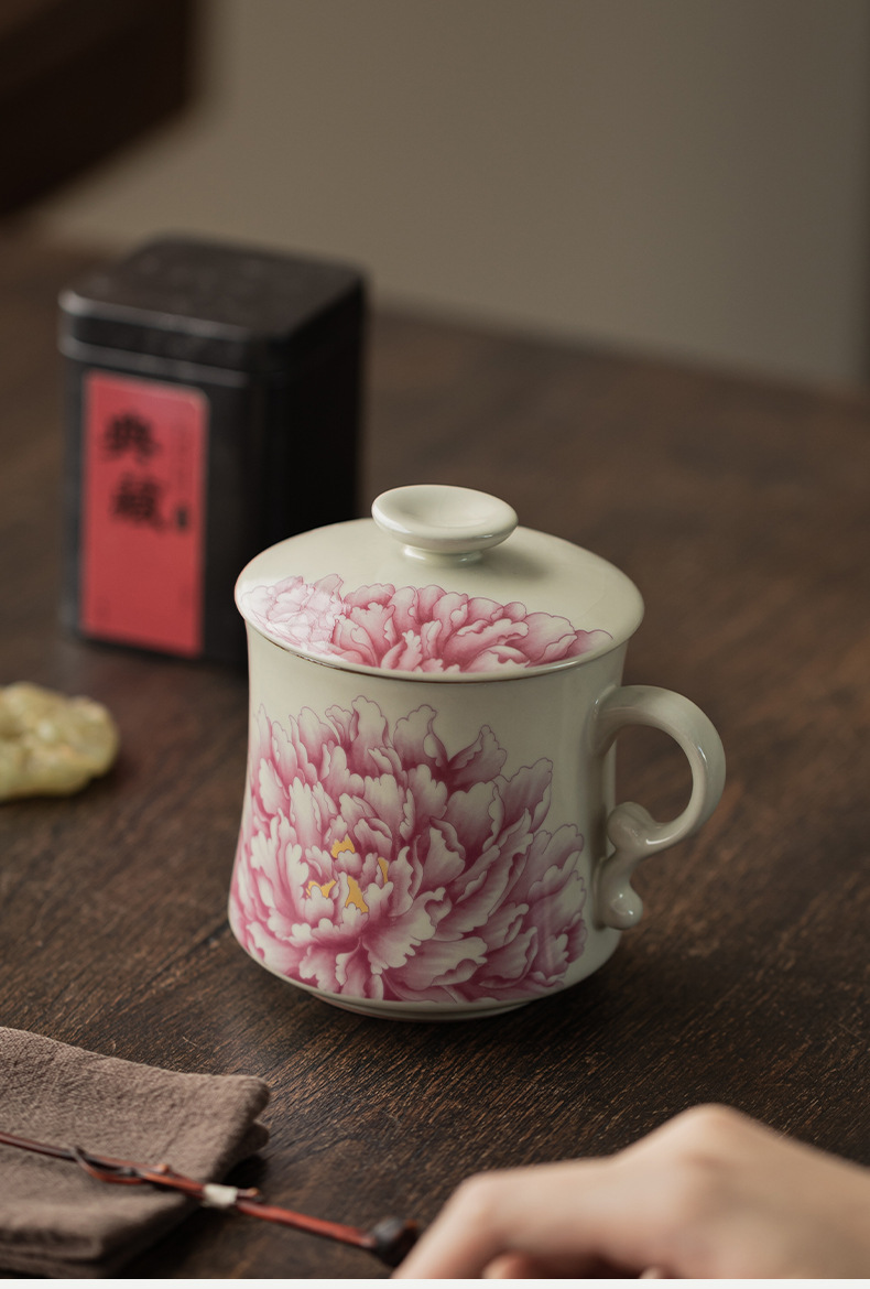Cổ Ru Lò Hoa Mẫu Đơn Hình Lưỡi Liềm Cốc Nước, Gốm Văn Phòng Trà, Cốc Có Nắp, Lọc Trà