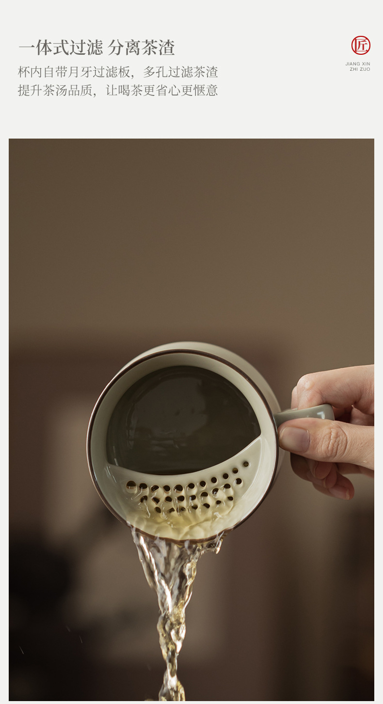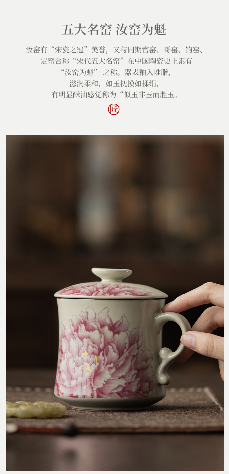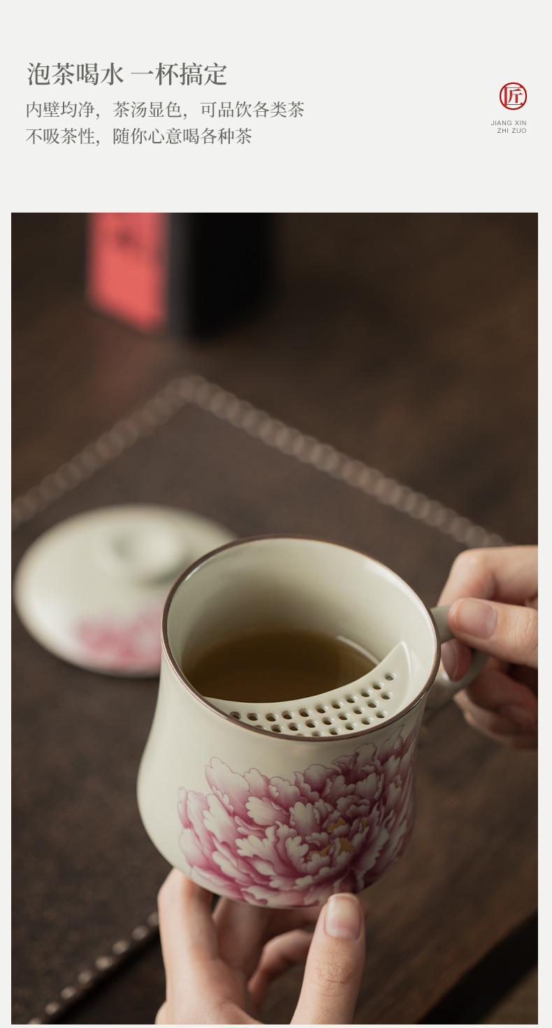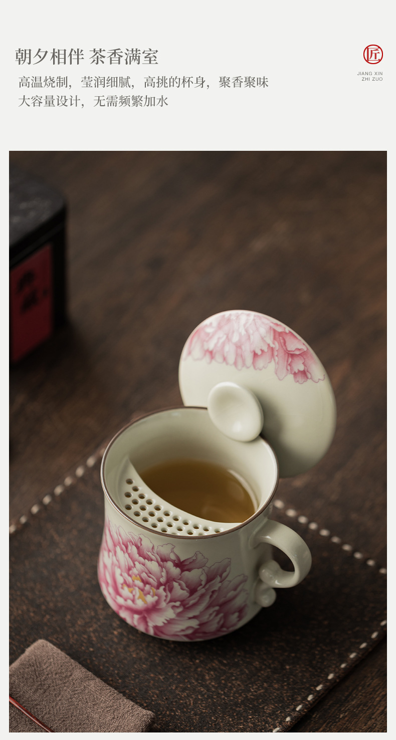 Cổ Ru Lò Hoa Mẫu Đơn Hình Lưỡi Liềm Cốc Nước, Gốm Văn Phòng Trà, Cốc Có Nắp, Lọc Trà