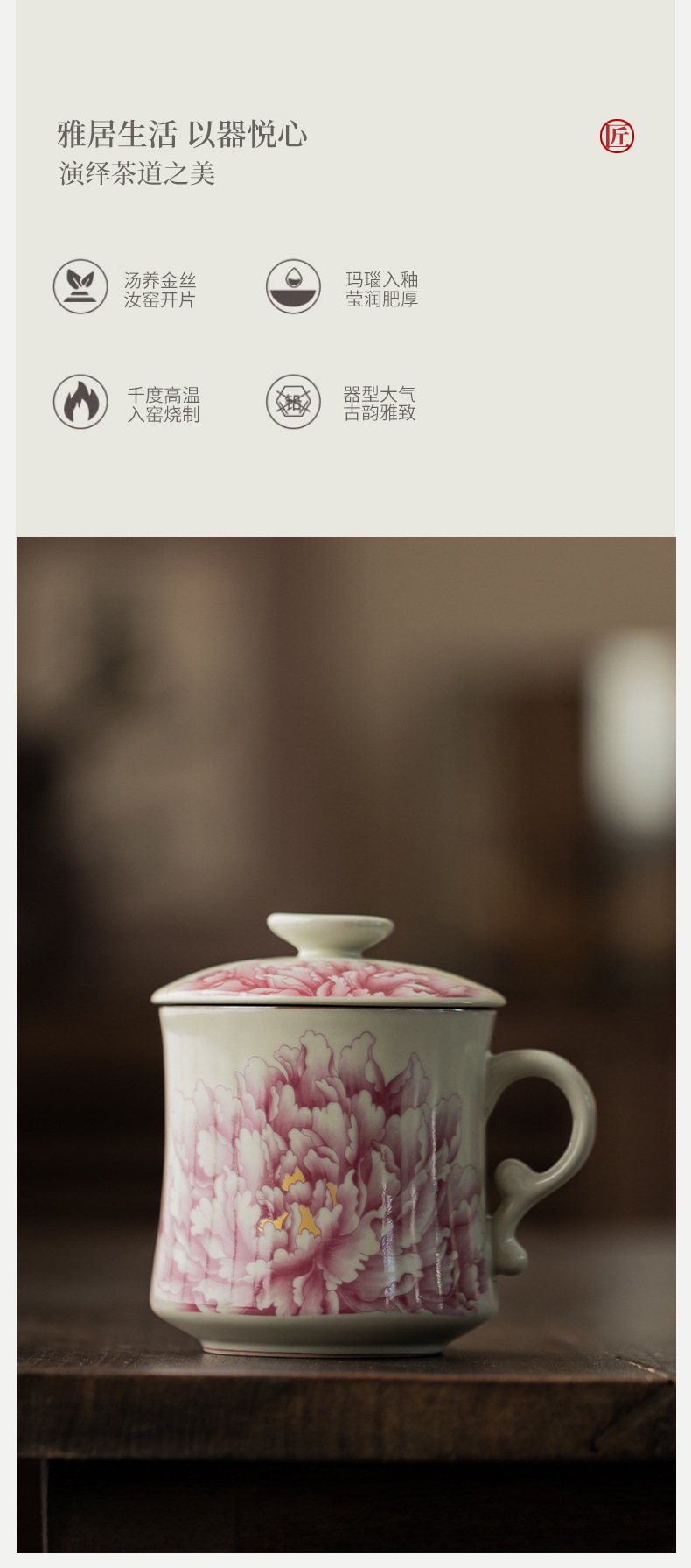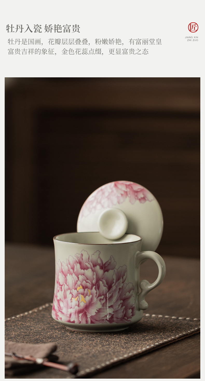 - Cổ Ru Lò Hoa Mẫu Đơn Hình Lưỡi Liềm Cốc Nước, Gốm Văn Phòng Trà, Cốc Có Nắp, Lọc Trà