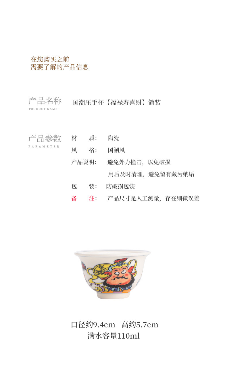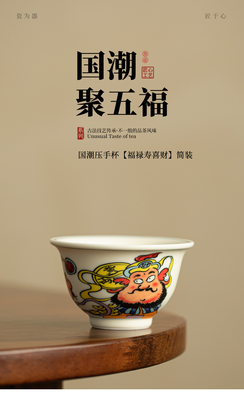- Cốc áp lực thủy triều quốc gia Fu Lu Shou Xi Cai cốc trà gốm sứ cốc chủ nhân cốc đơn tách trà cốc trà cao cấp chuyên dụng cá nhân