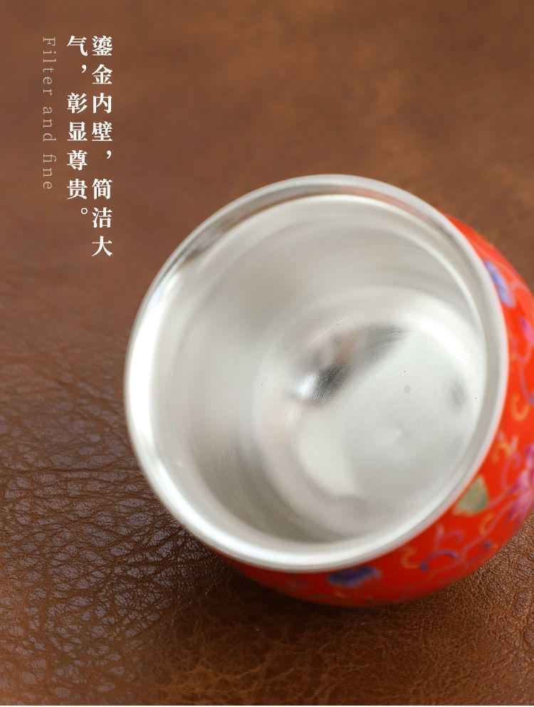 - Cốc bạc có đế lót ly 999 cốc trà mạ bạc thủ công bằng bạc nguyên chất men màu Kung Fu tách trà bát trà cốc chủ nhân