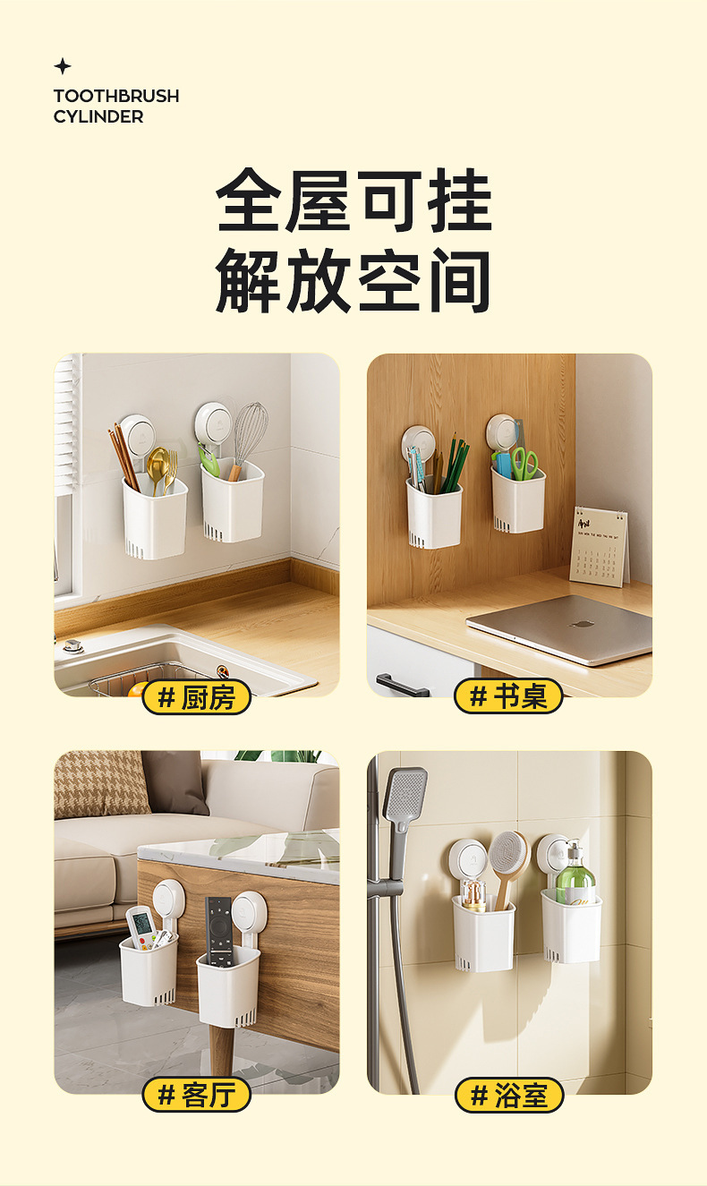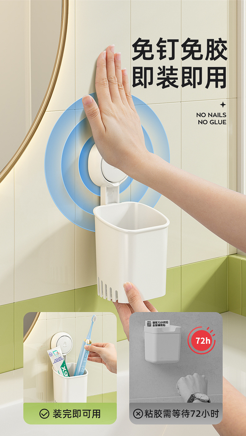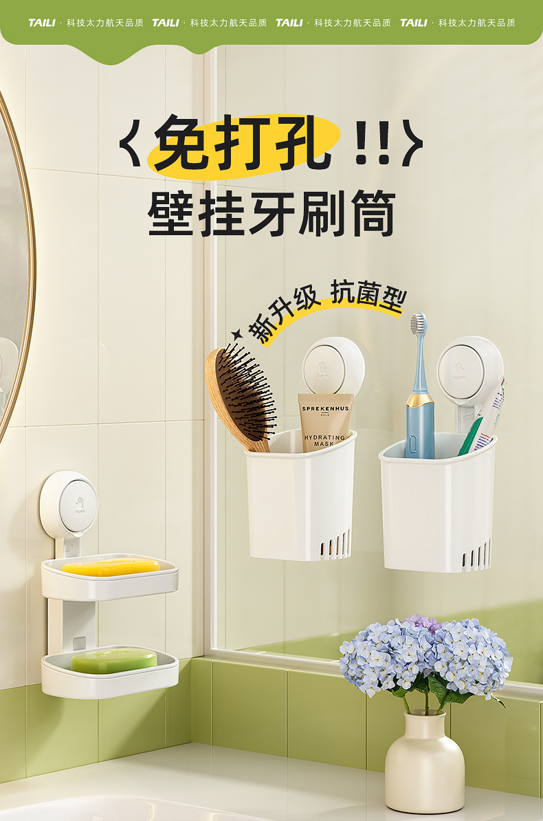 Cốc bàn chải đánh răng phòng tắm Taili treo tường cốc hút bàn chải đánh răng giá để đồ kem đánh răng không cần đục lỗ ống lưu trữ tường
