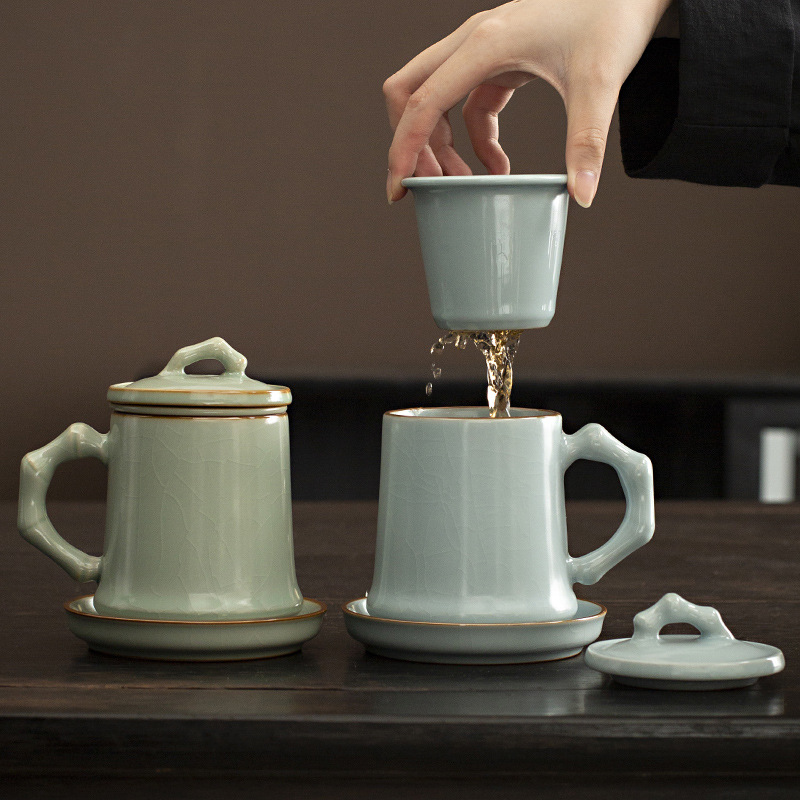 Cốc cá nhân văn phòng Ruyao Tianqing tách trà dung tích lớn cốc trà pha trà tùy tiện quà lưu niệm cao cấp văn phòng