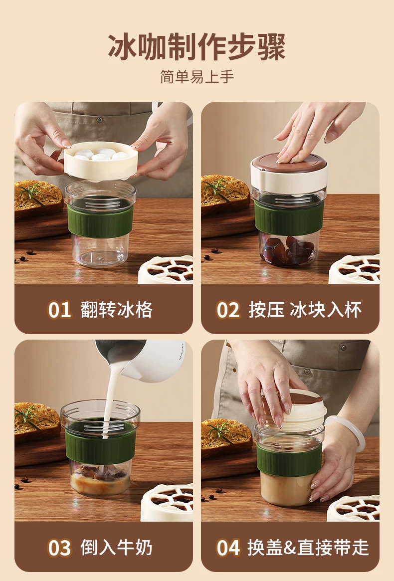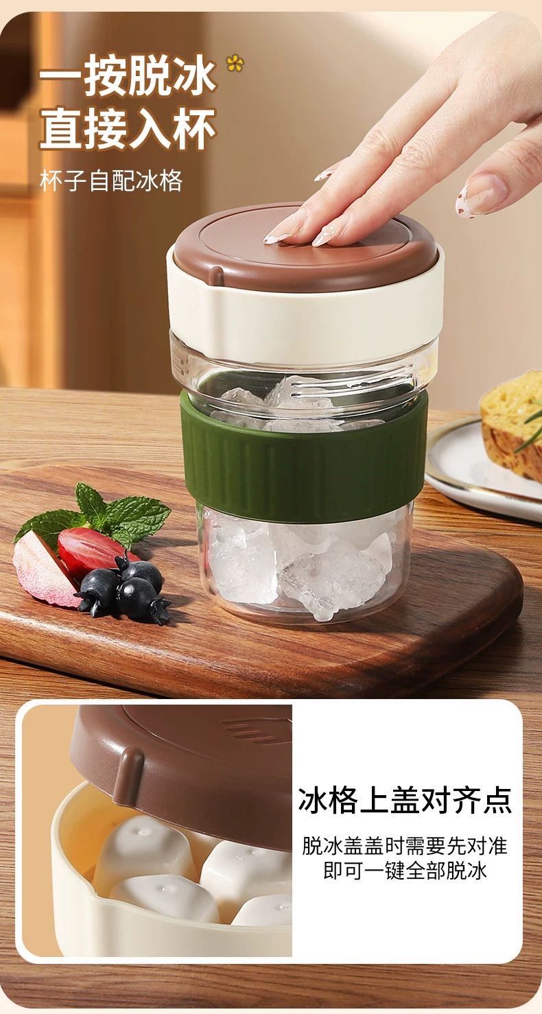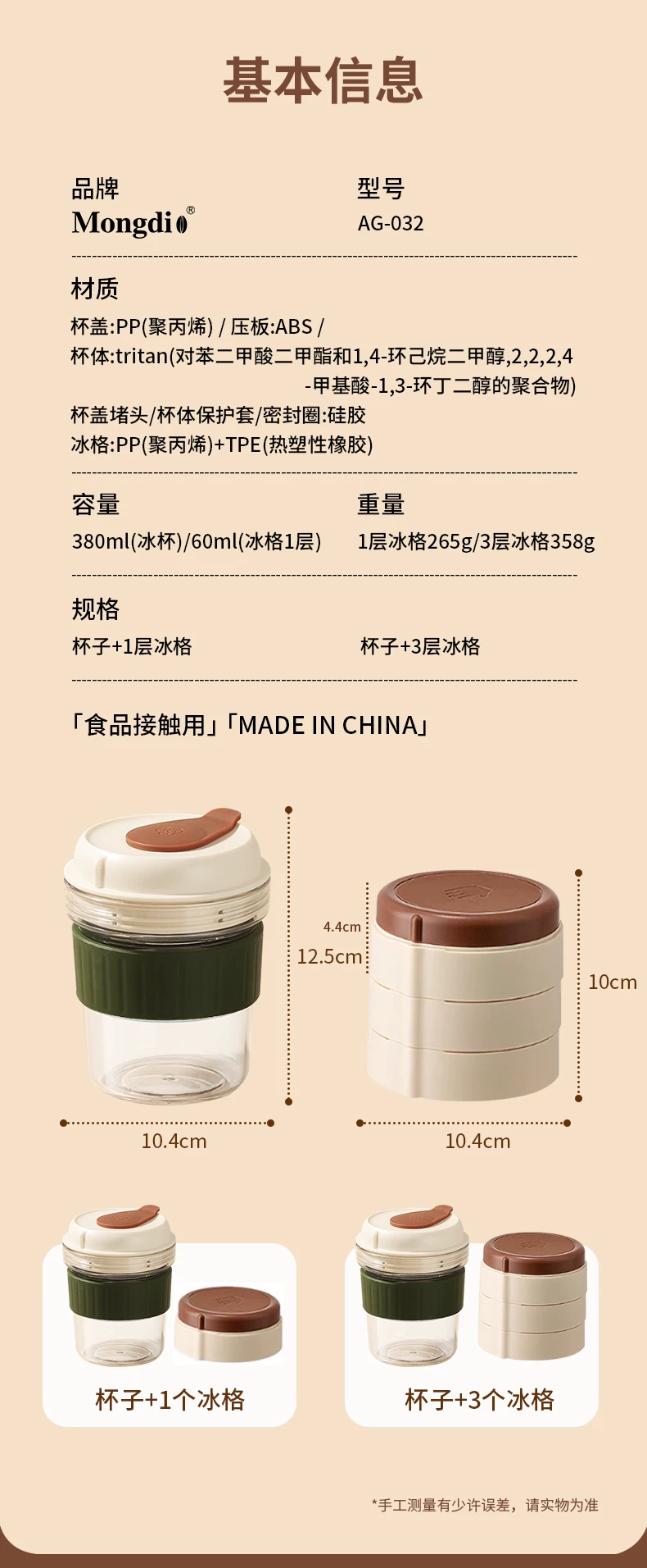 Cốc cà phê đá Mongdio để mang đi khi đi chơi, đi kèm khuôn làm đá viên, khay đá dạng nhấn, cốc di động, cốc nước.