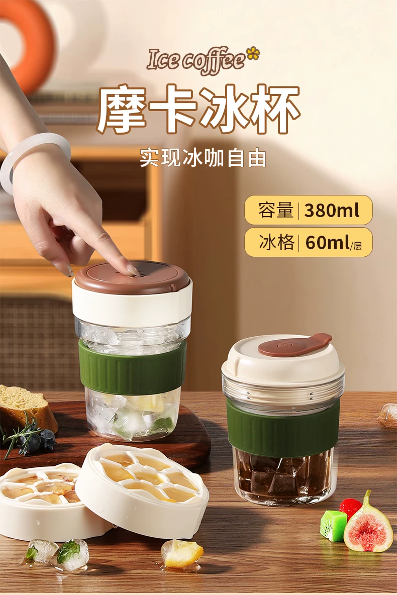 - Cốc cà phê đá Mongdio để mang đi khi đi chơi, đi kèm khuôn làm đá viên, khay đá dạng nhấn, cốc di động, cốc nước.