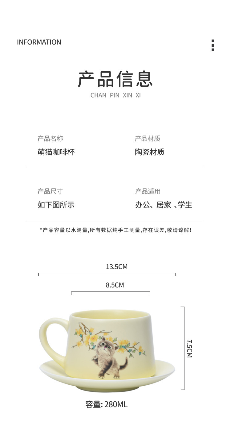 - Cốc cà phê gốm sứ mèo dễ thương vẽ tay cốc nước chuyên dụng cá nhân gia dụng văn phòng cốc cốc trà chiều bộ đĩa