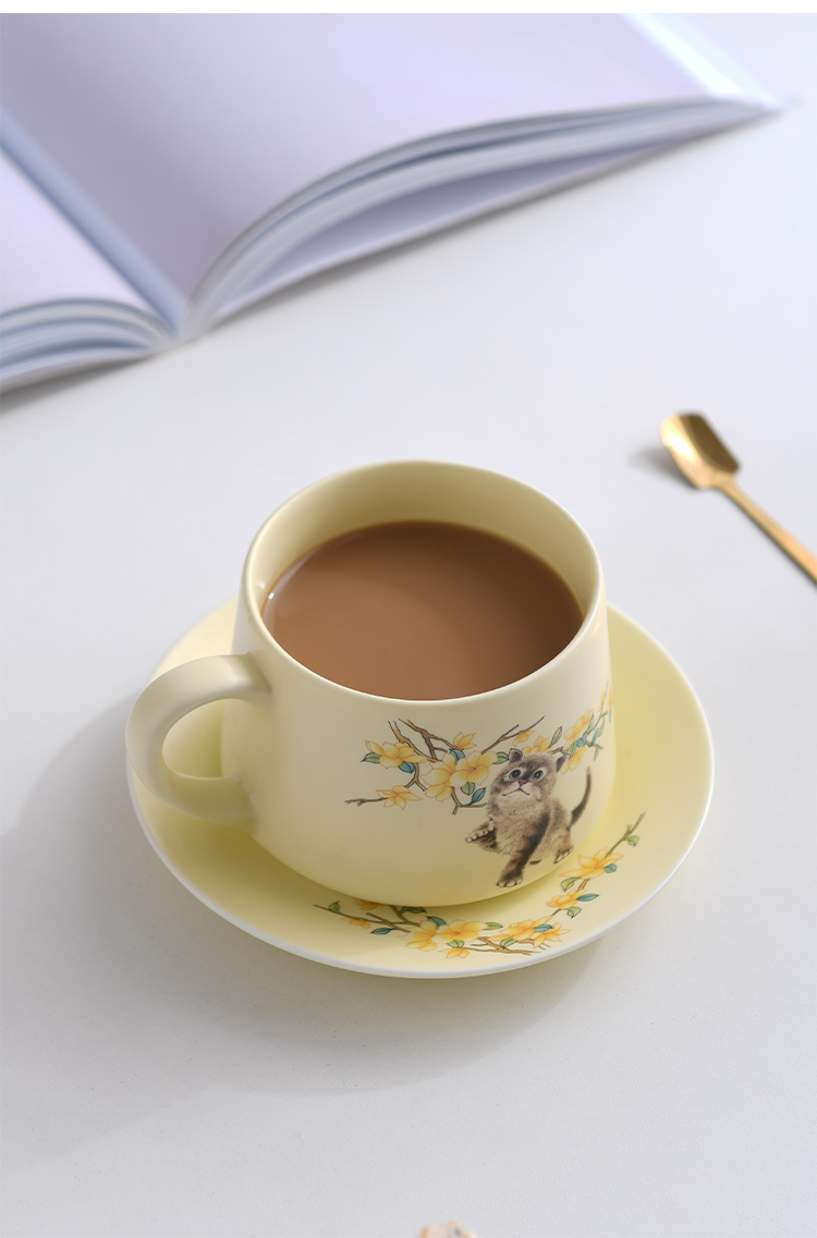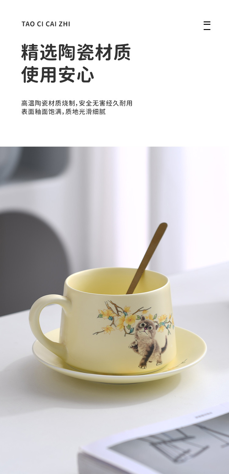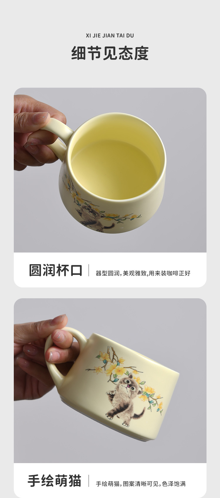 Cốc cà phê gốm sứ mèo dễ thương vẽ tay cốc nước chuyên dụng cá nhân gia dụng văn phòng cốc cốc trà chiều bộ đĩa