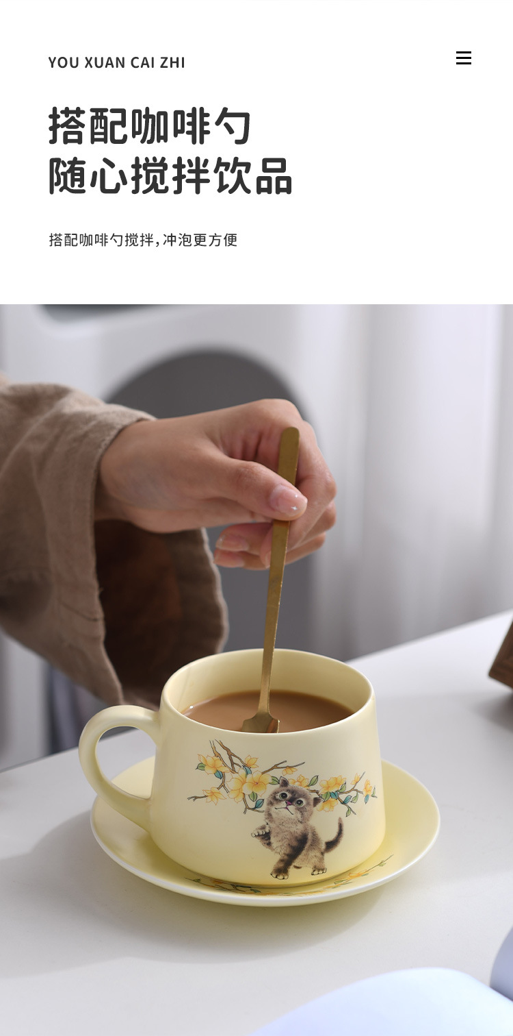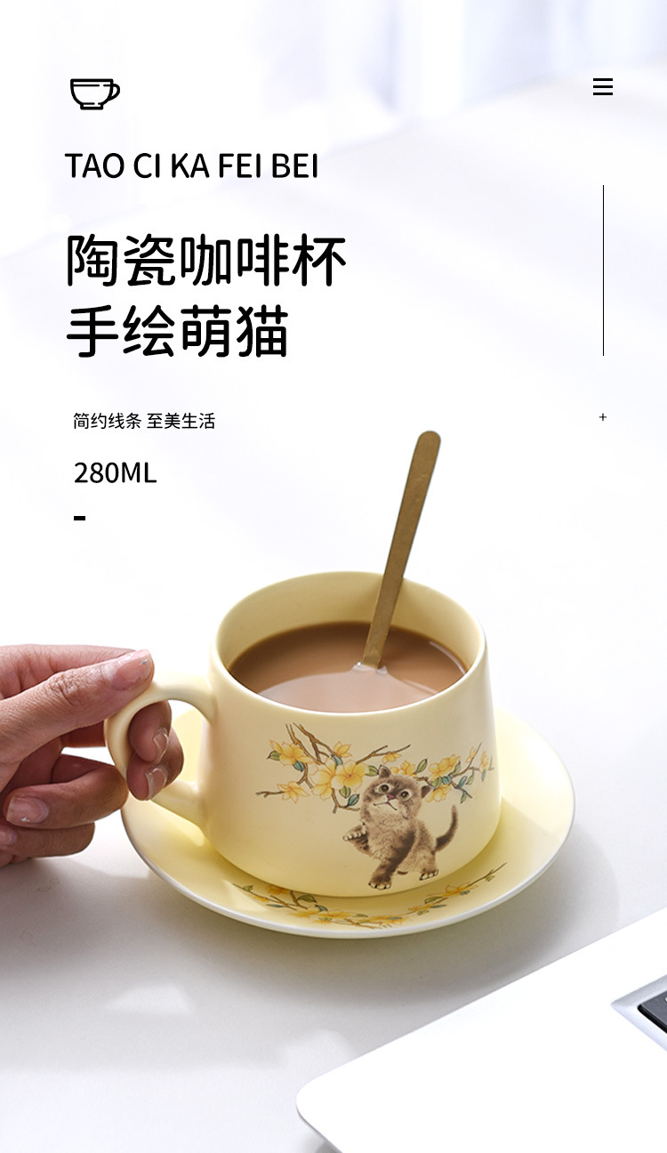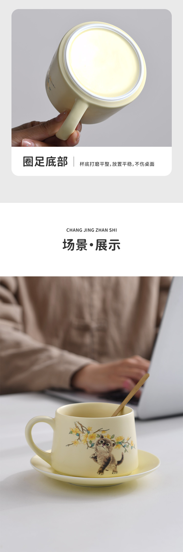 Cốc cà phê gốm sứ mèo dễ thương vẽ tay cốc nước chuyên dụng cá nhân gia dụng văn phòng cốc cốc trà chiều bộ đĩa