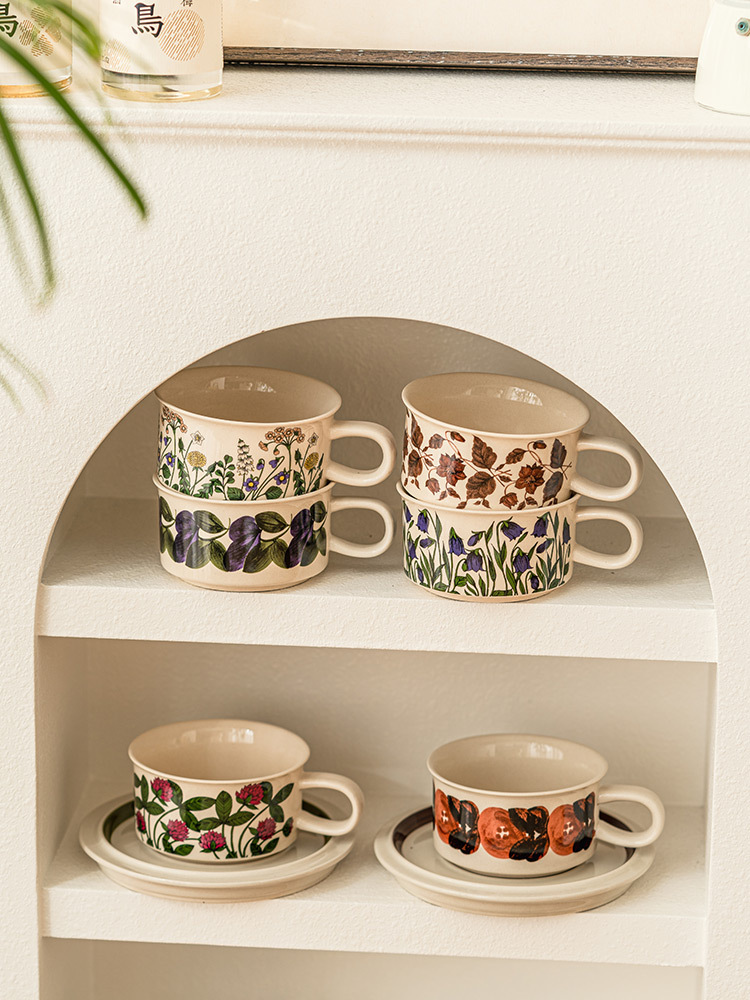 Cốc cà phê gốm sứ vẽ tay Thời Trung Cổ Bộ cốc và đĩa uống nước gia dụng tinh tế cao cấp Cốc Cốc Cốc Ăn Sáng có đĩa