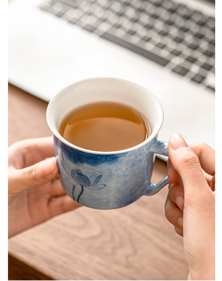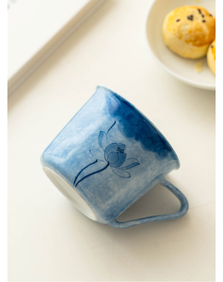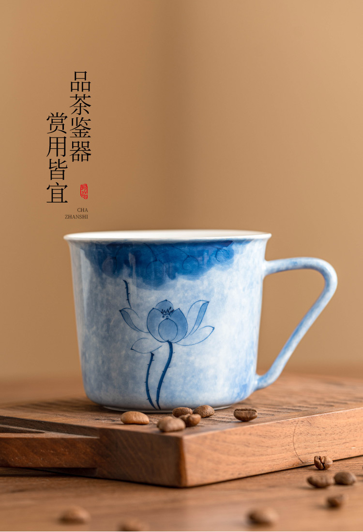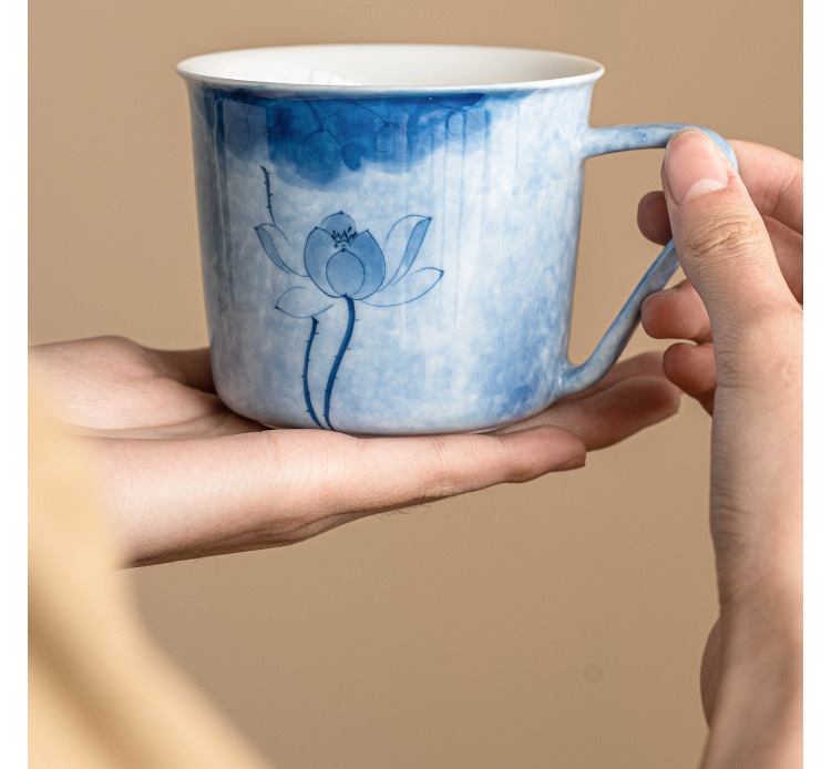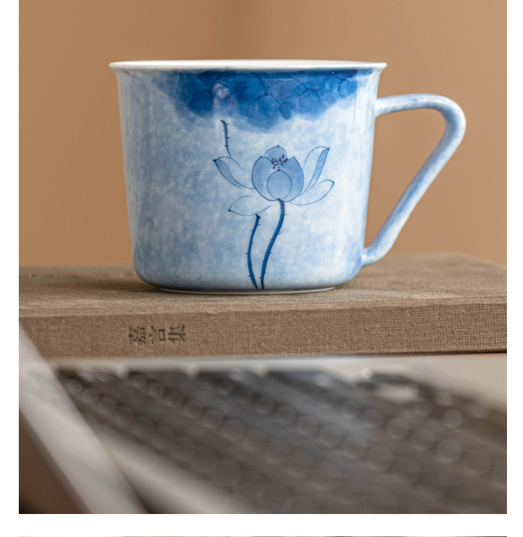 - Cốc cà phê hoa sen xanh vẽ tay cốc trà chiều tinh tế cao cấp gốm sứ cốc Latte Có giá trị cao Cốc uống nước