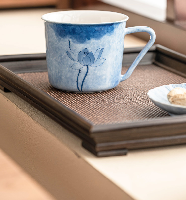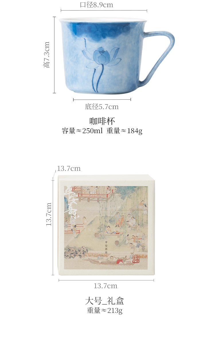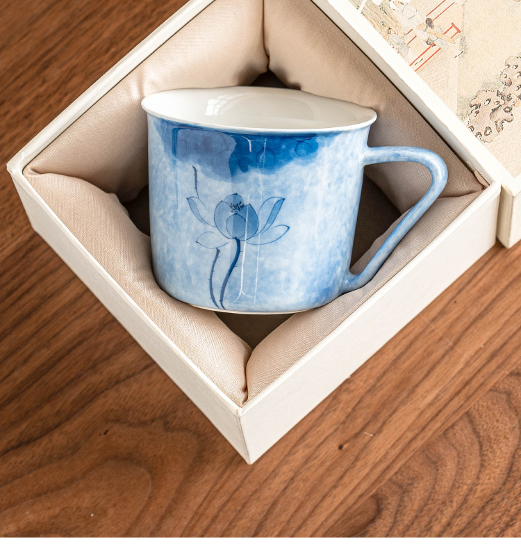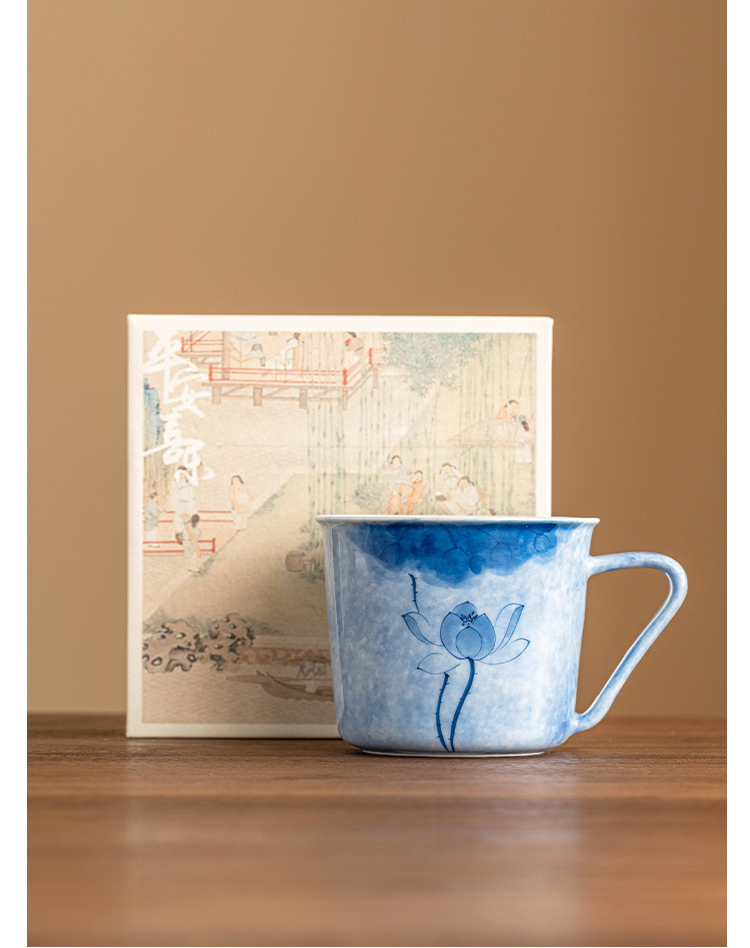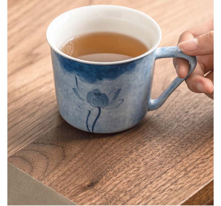 - Cốc cà phê hoa sen xanh vẽ tay cốc trà chiều tinh tế cao cấp gốm sứ cốc Latte Có giá trị cao Cốc uống nước