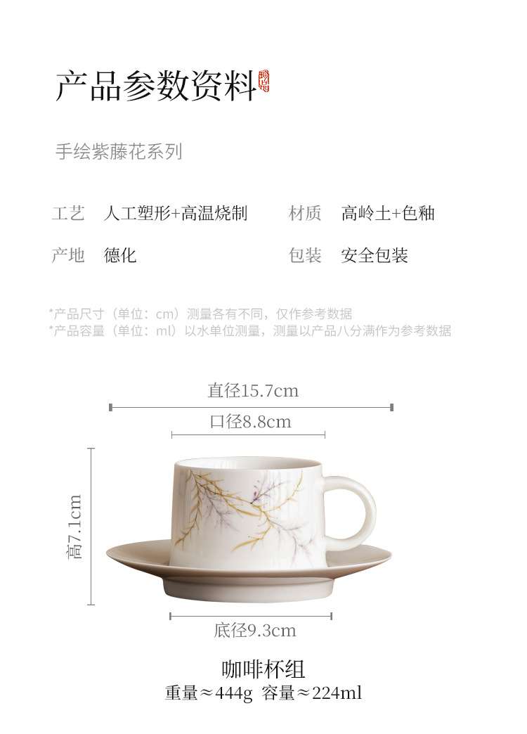 - Cốc cà phê hoa tử đằng vẽ tay cốc trà chiều tinh tế cốc gốm sứ phong cách Trung Quốc gia dụng cốc nước bộ cốc đĩa
