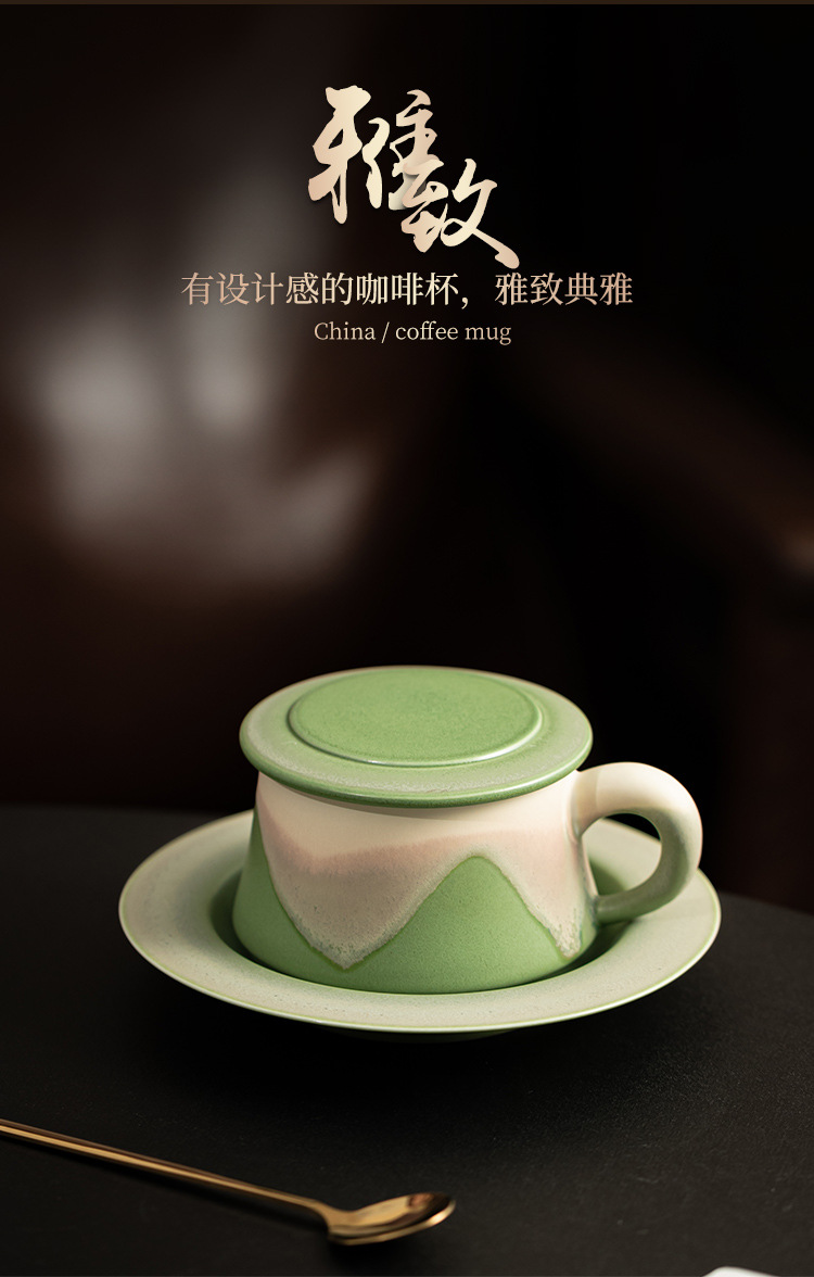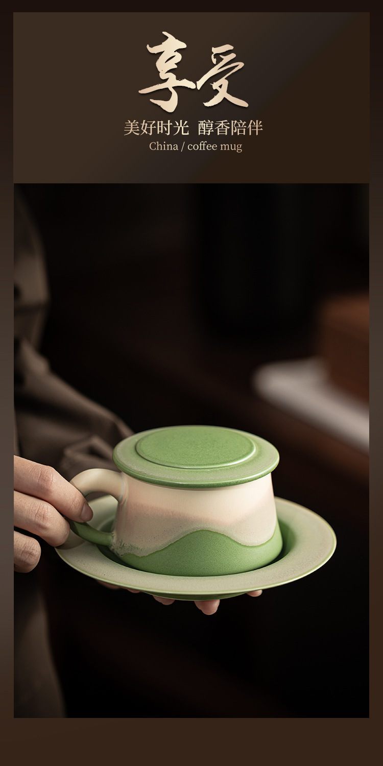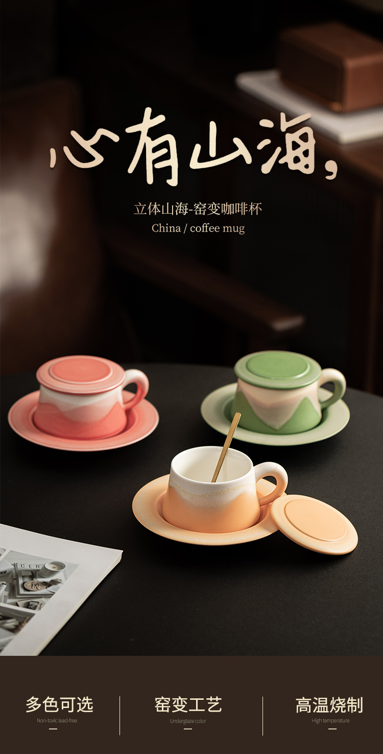 - Cốc cà phê lò nung núi và biển hình trái tim có nắp, cốc cà phê gốm sứ sử dụng tại nhà, cốc uống nước cá nhân văn phòng, quà tặng.