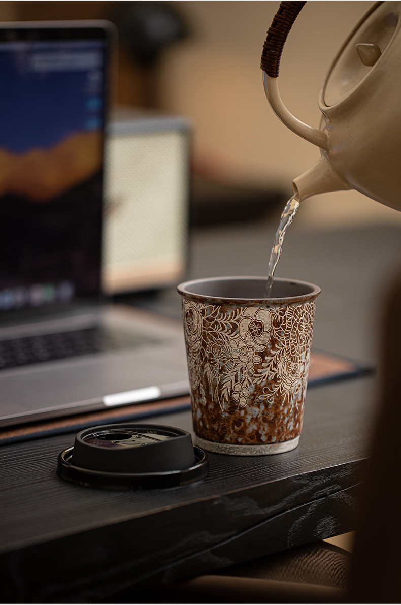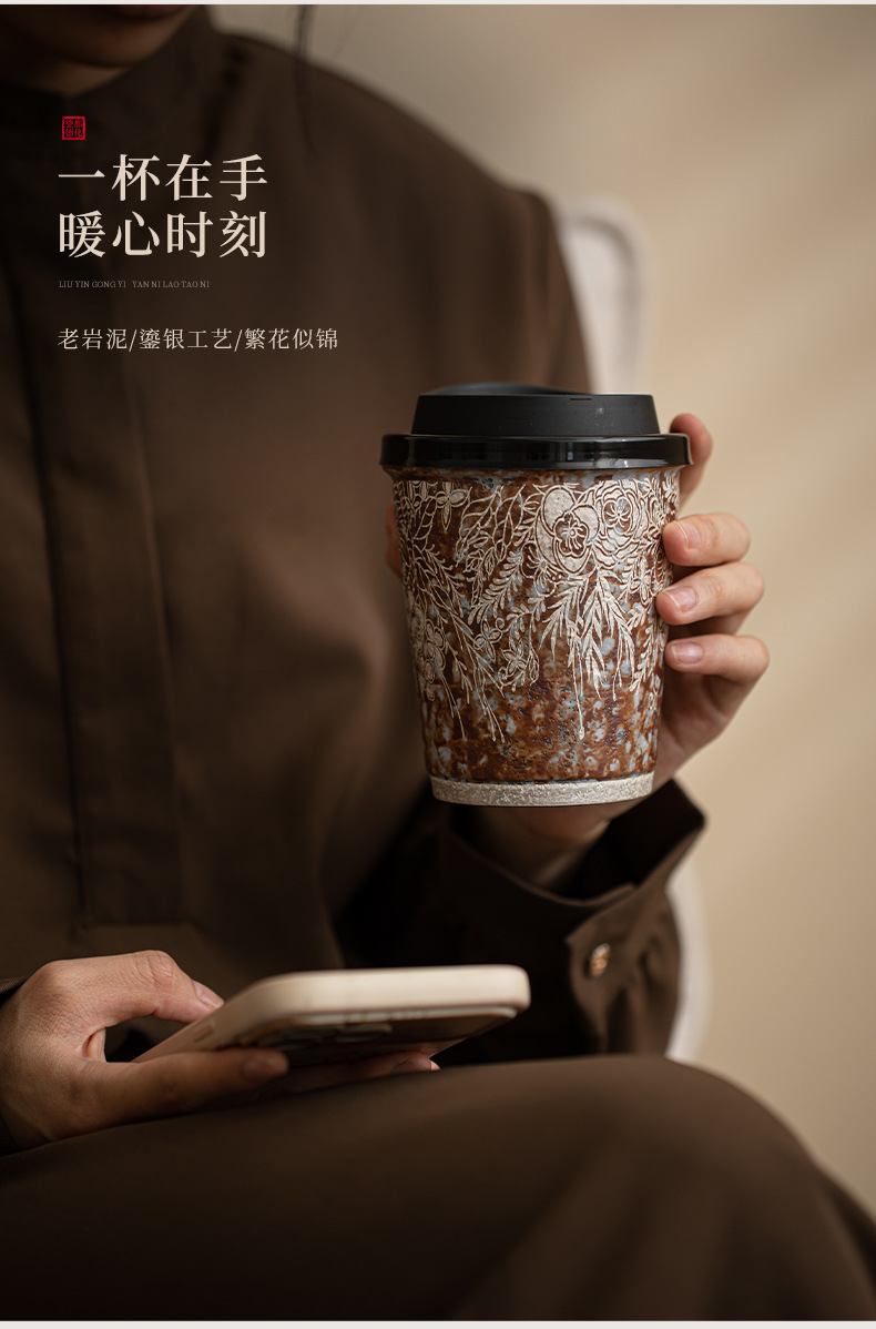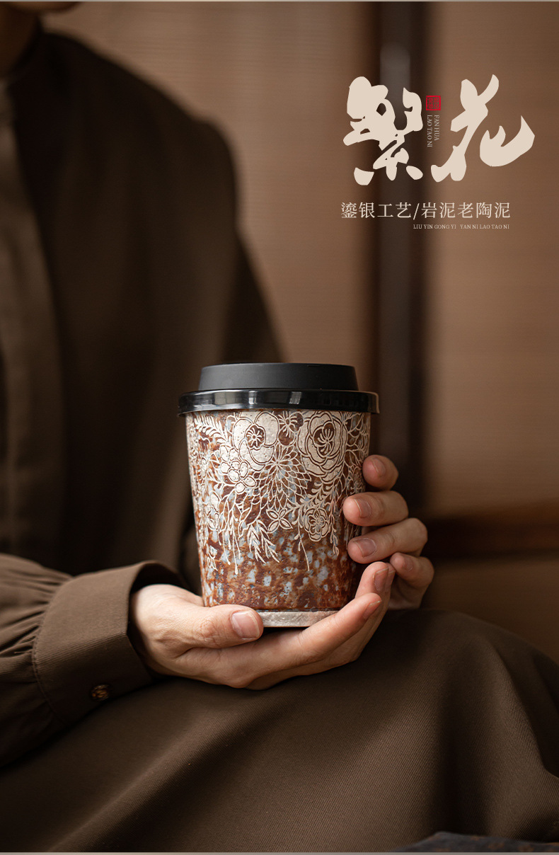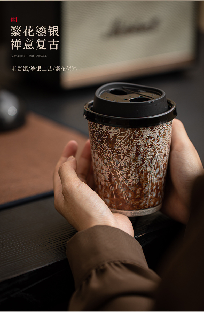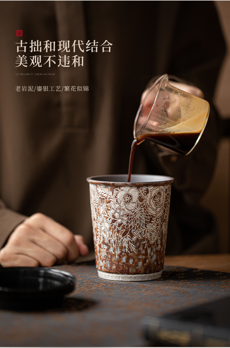 Cốc cà phê mạ bạc hoa bùn đá cũ cốc nước gốm thô cỡ lớn văn phòng gia dụng cổ điển cốc tiện dụng cốc Coca
