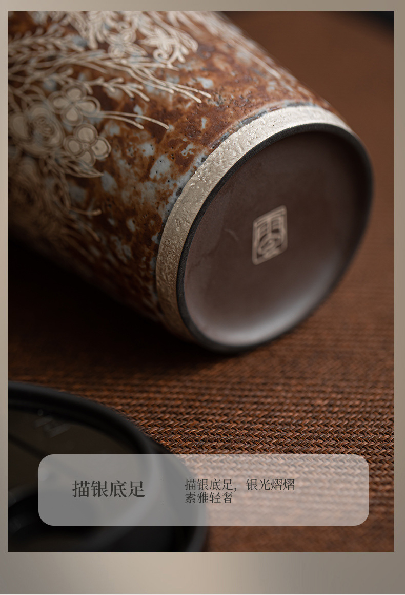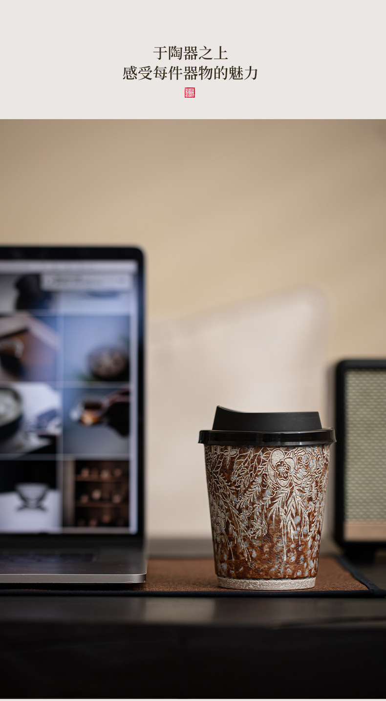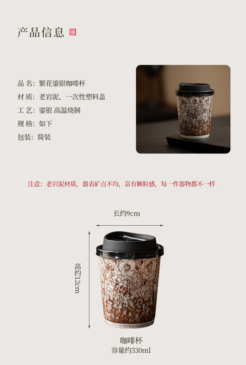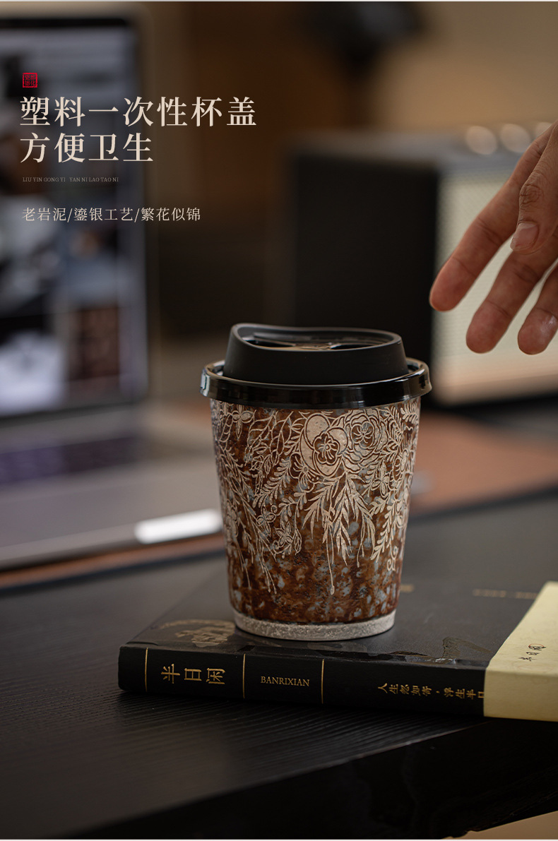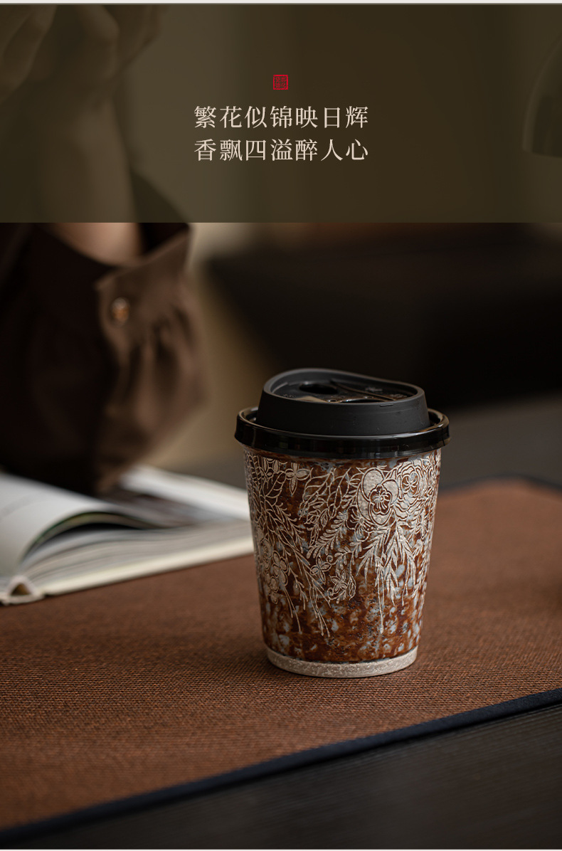 Cốc cà phê mạ bạc hoa bùn đá cũ cốc nước gốm thô cỡ lớn văn phòng gia dụng cổ điển cốc tiện dụng cốc Coca