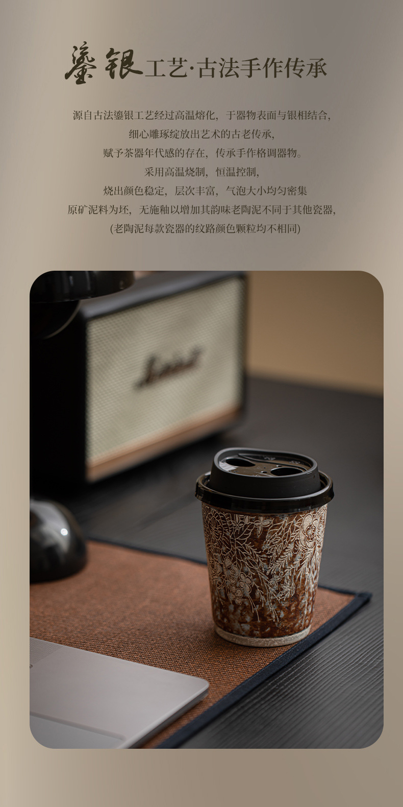 - Cốc cà phê mạ bạc hoa bùn đá cũ cốc nước gốm thô cỡ lớn văn phòng gia dụng cổ điển cốc tiện dụng cốc Coca