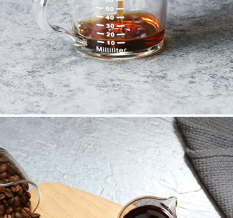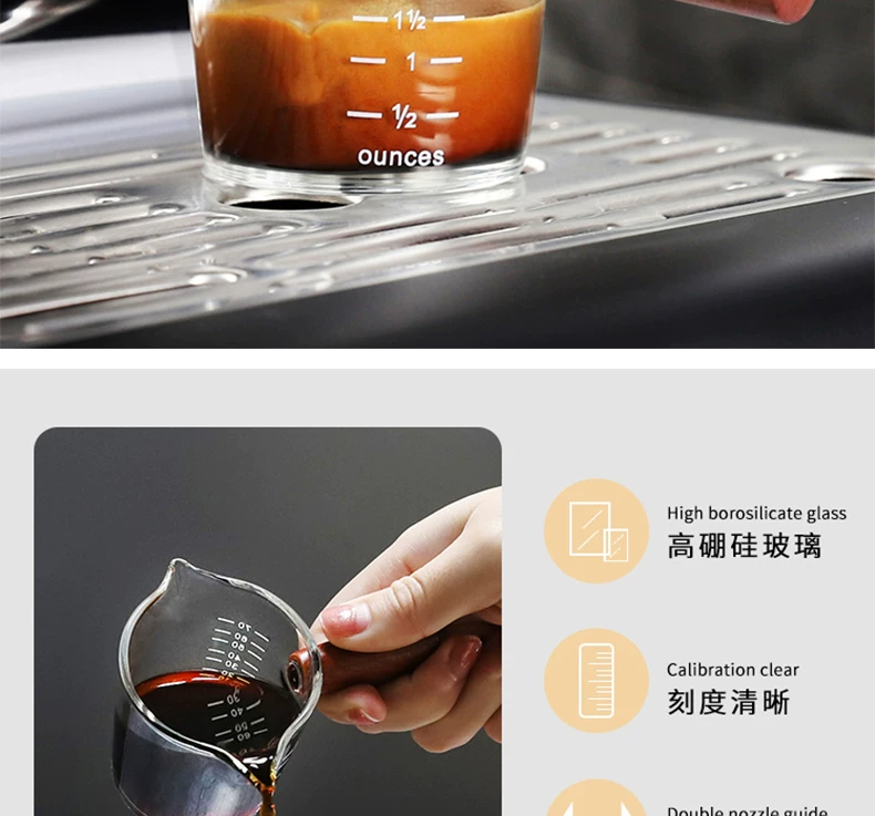 - Cốc cà phê Mongdio, bình sữa nhỏ dùng trong gia đình, tay cầm bằng gỗ, cốc pha cà phê espresso, cốc đo bằng kính có vạch chia độ.
