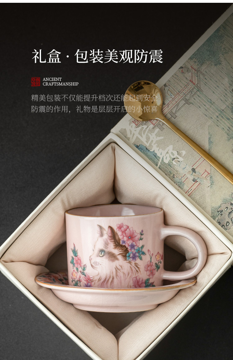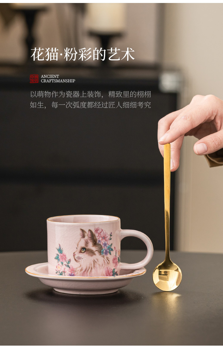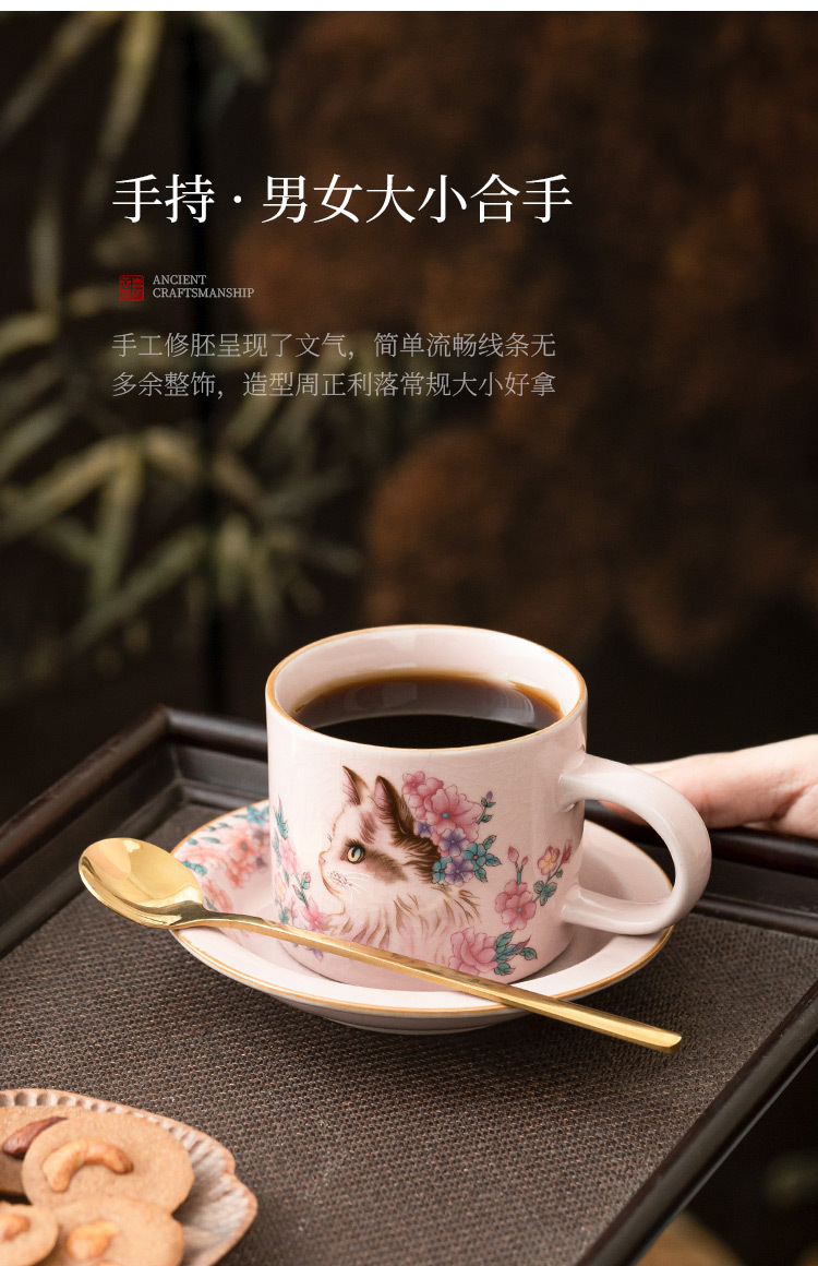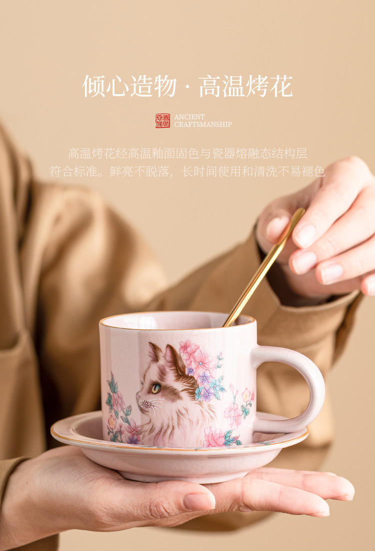 Cốc cà phê Ruyao bột Ruhua mèo cốc đặc biệt dành cho cá nhân nữ cốc và đĩa cốc khuấy cổ điển tinh tế cốc gốm sứ