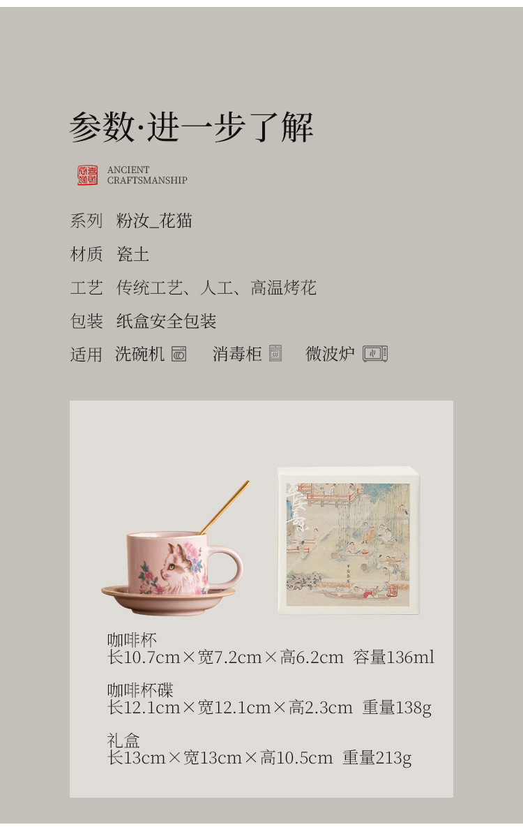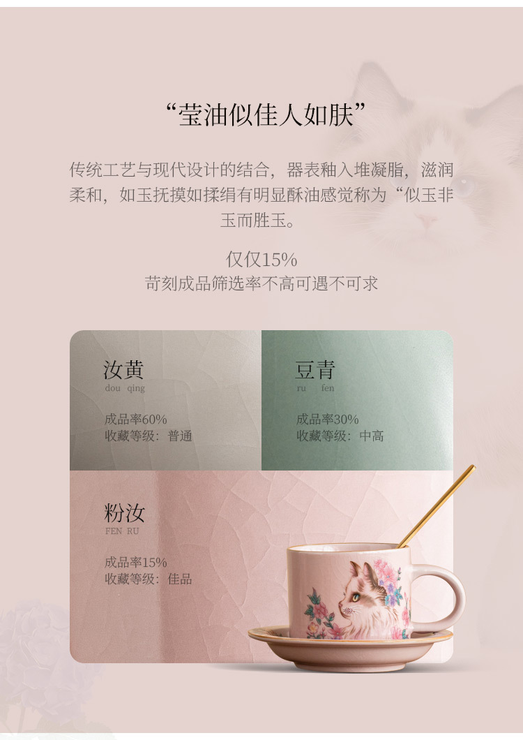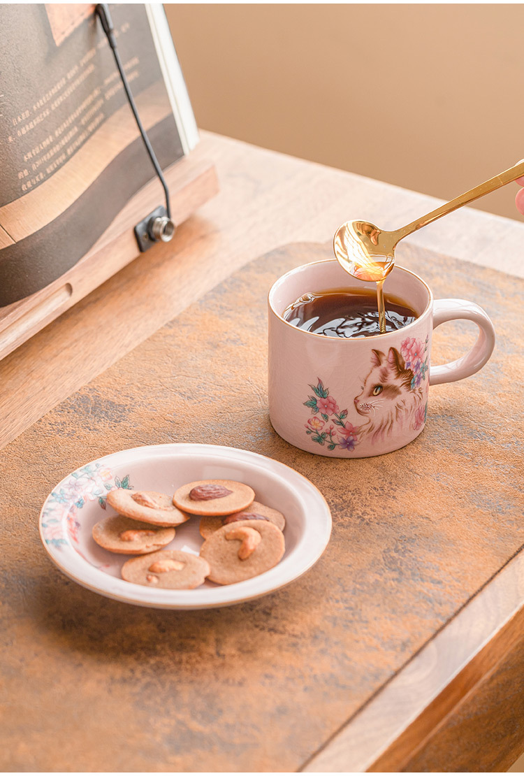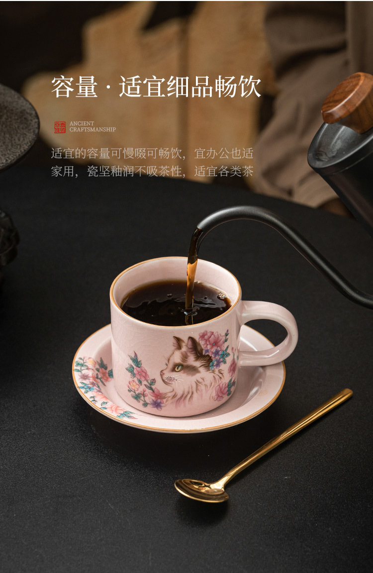 Cốc cà phê Ruyao bột Ruhua mèo cốc đặc biệt dành cho cá nhân nữ cốc và đĩa cốc khuấy cổ điển tinh tế cốc gốm sứ