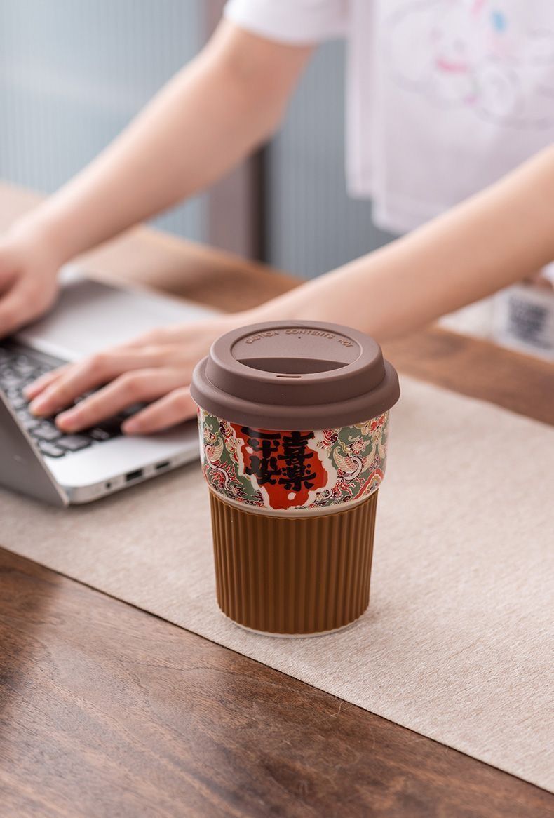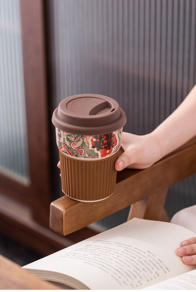 - Cốc cà phê trà xám thực vật cổ cốc gốm sứ văn hóa và sáng tạo cốc quà tặng cốc có nắp cốc quà tặng