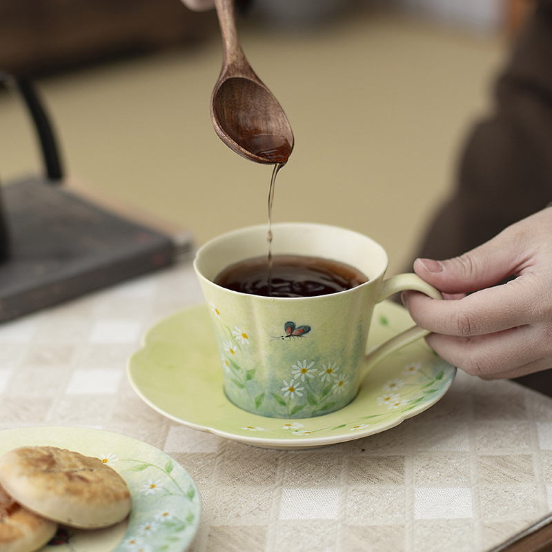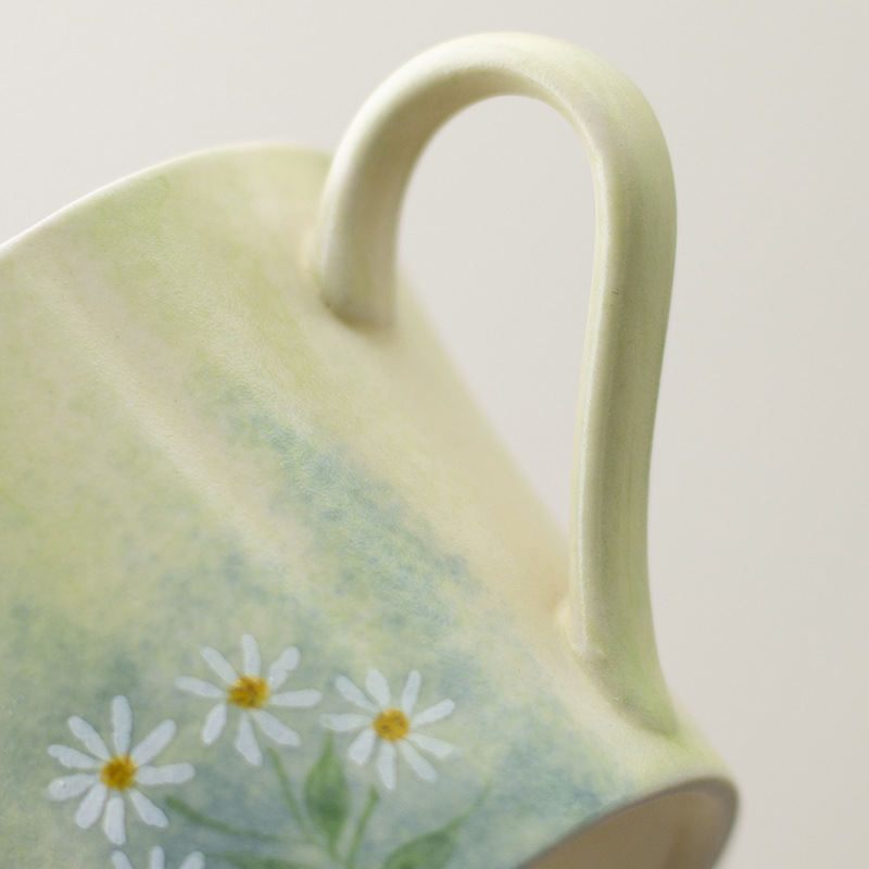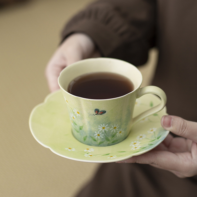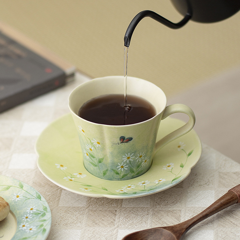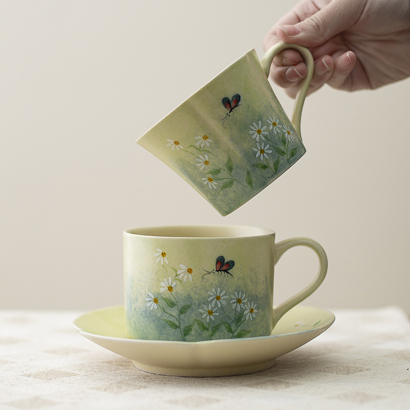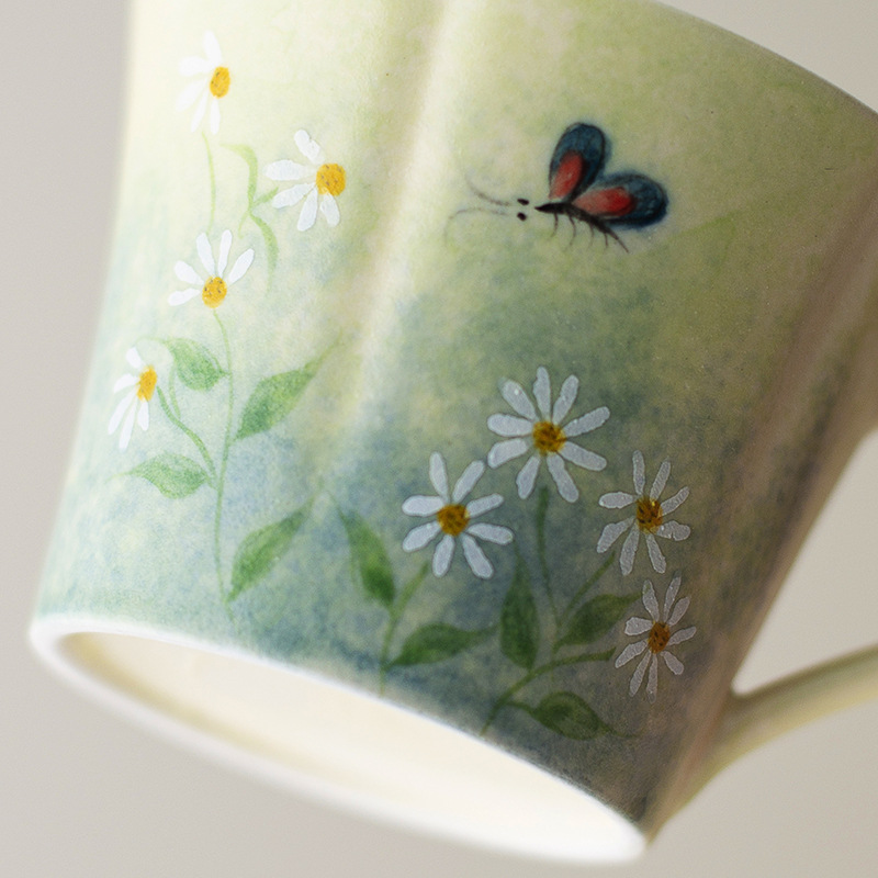 Cốc cà phê vẽ tay, hoa cúc tráng men, cốc nước gốm sứ giá trị cao, cốc trà chiều gia dụng nữ, sang trọng nhẹ nhàng