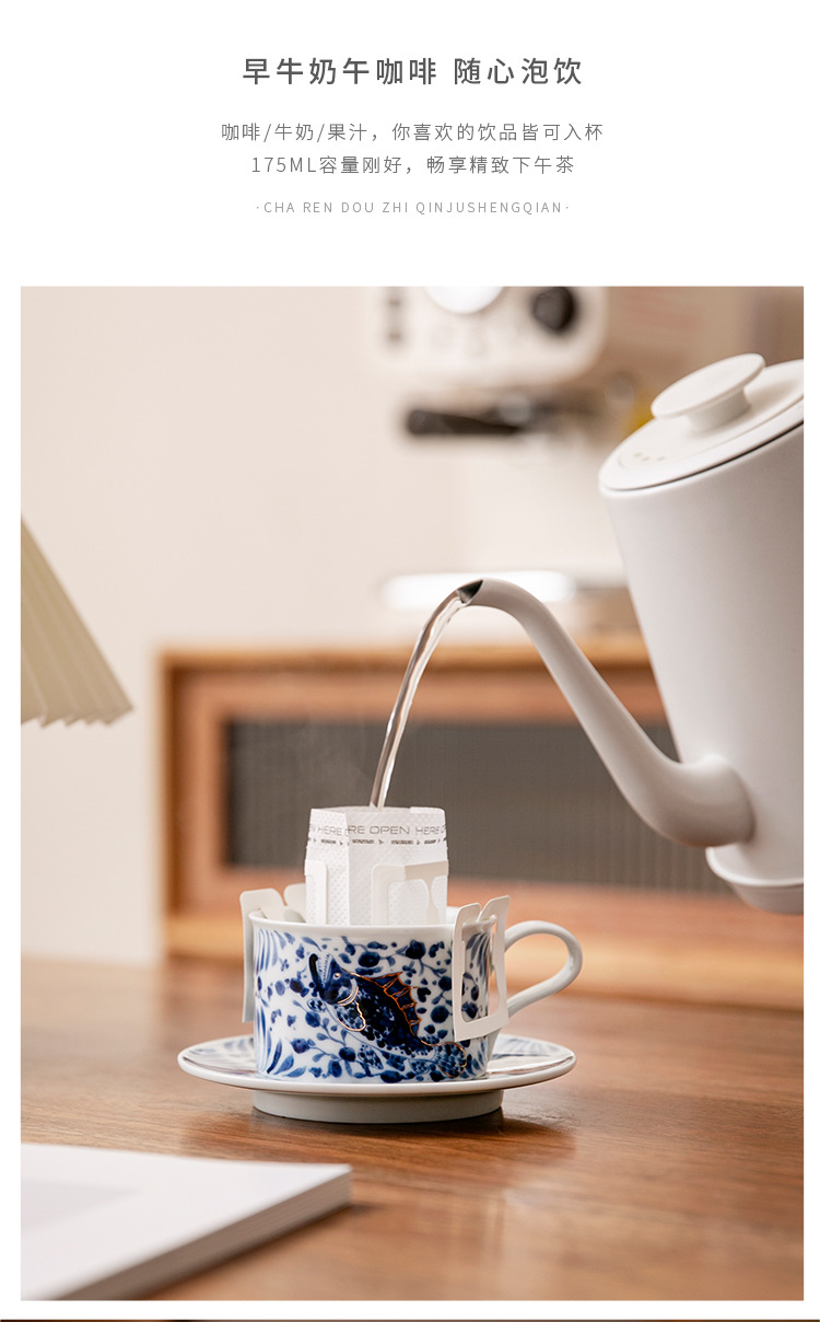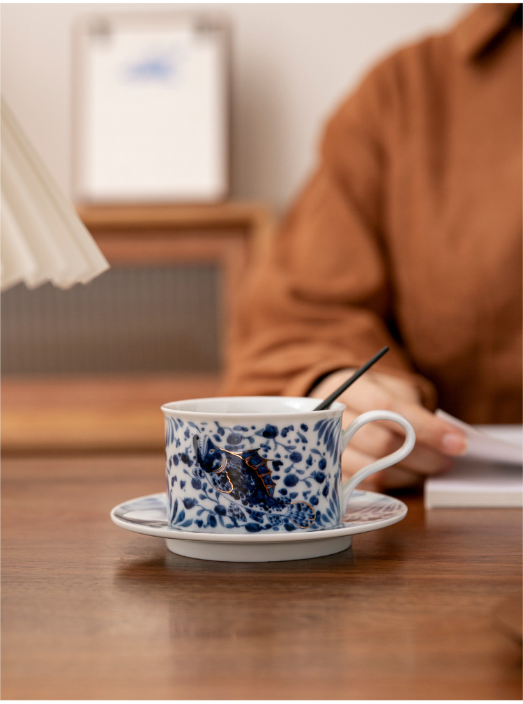 - Cốc cà phê xanh trắng cốc gốm sứ tinh xảo cao cấp cốc chủ nhân nữ cốc trà gia dụng bộ đĩa cốc cổ điển