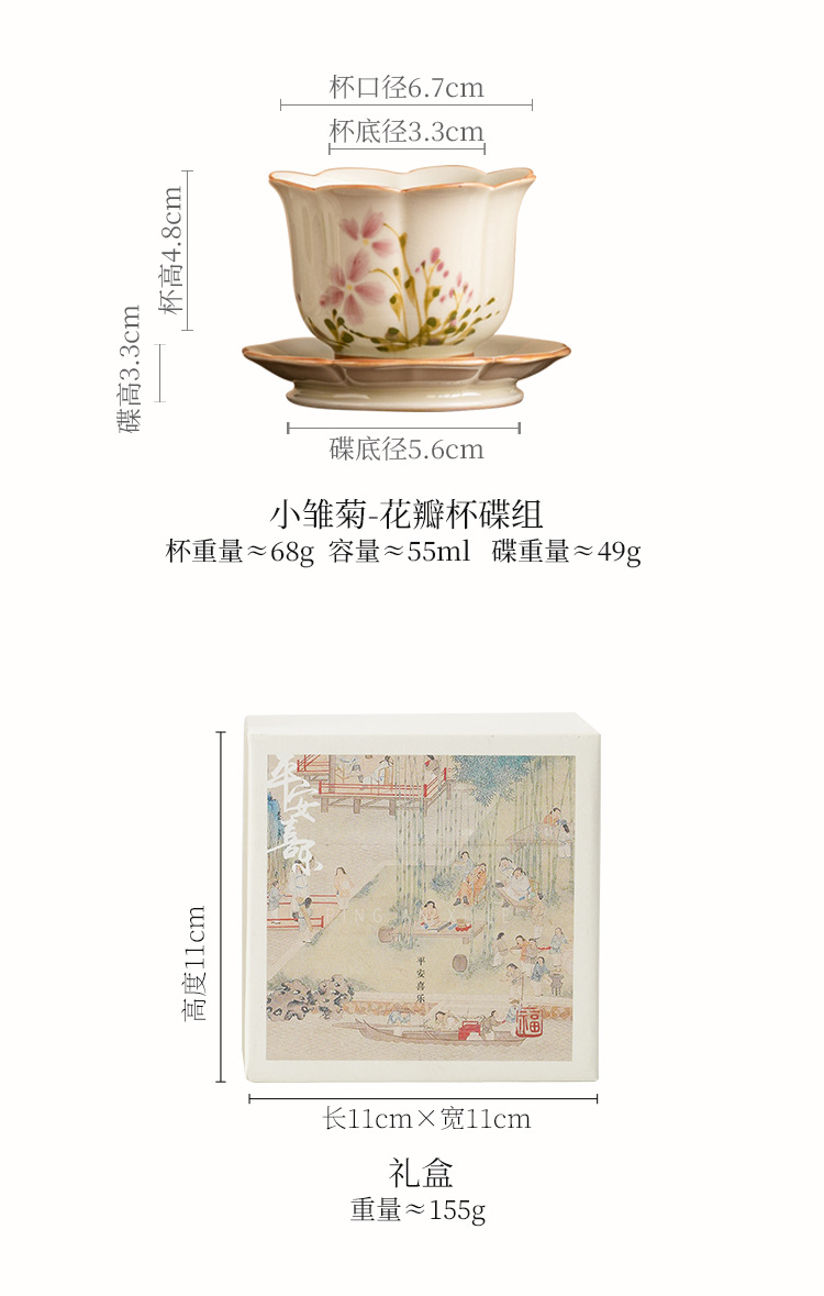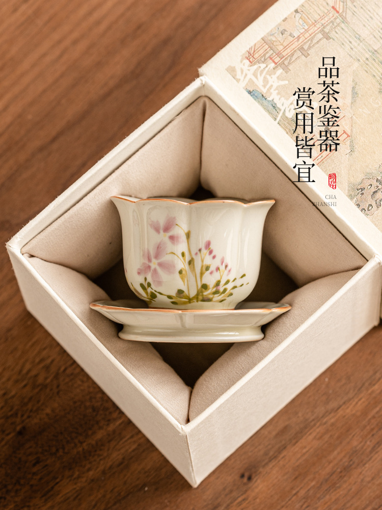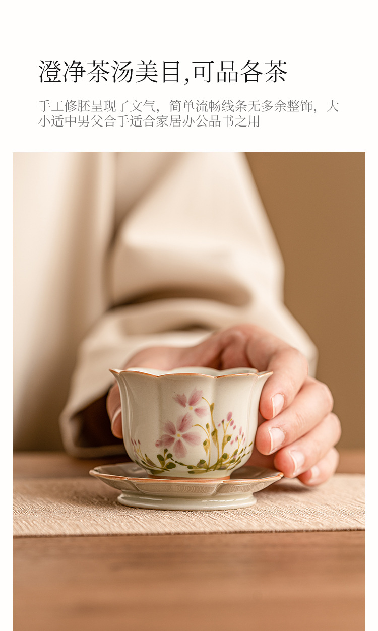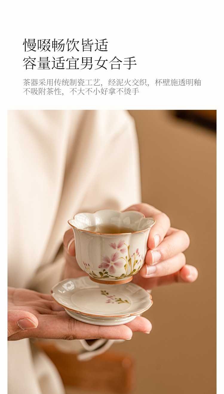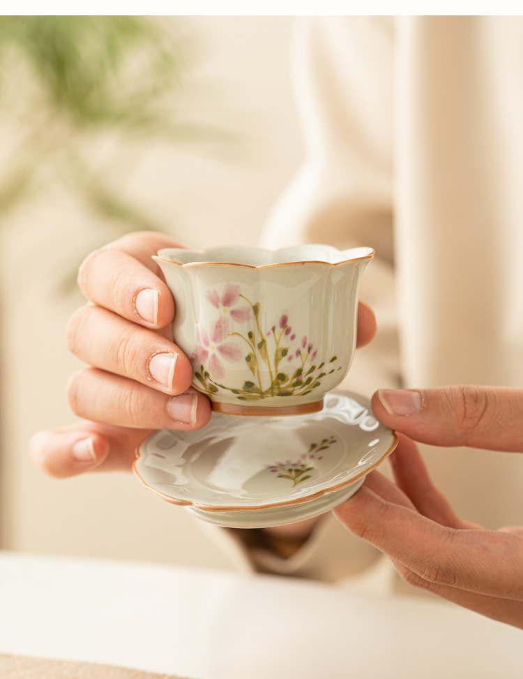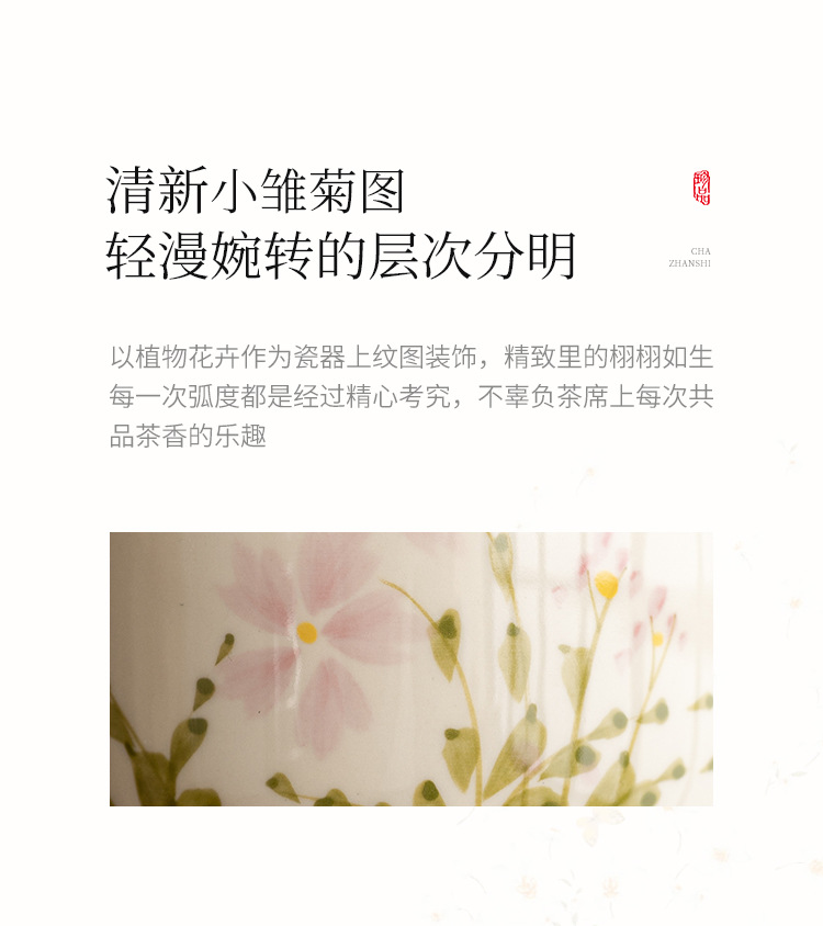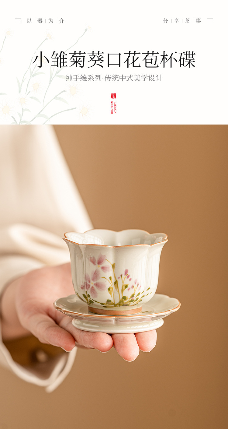 - Cốc cánh hoa cúc nhỏ vẽ tay cốc trà gốm sứ Trung Quốc cốc chủ nhân cốc uống trà chống bỏng cao cấp chuyên dụng cho nữ