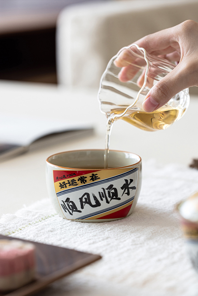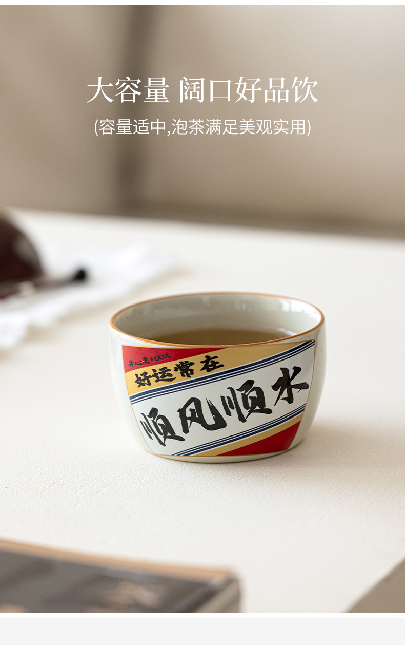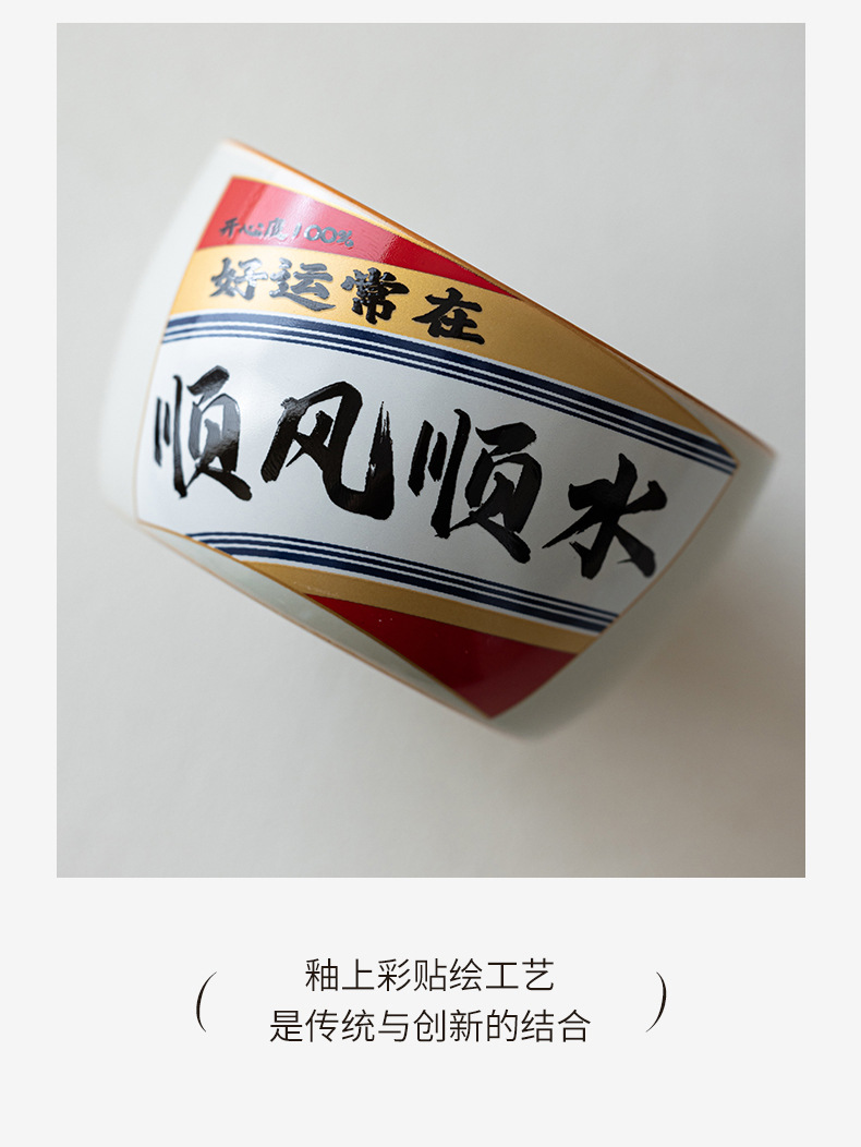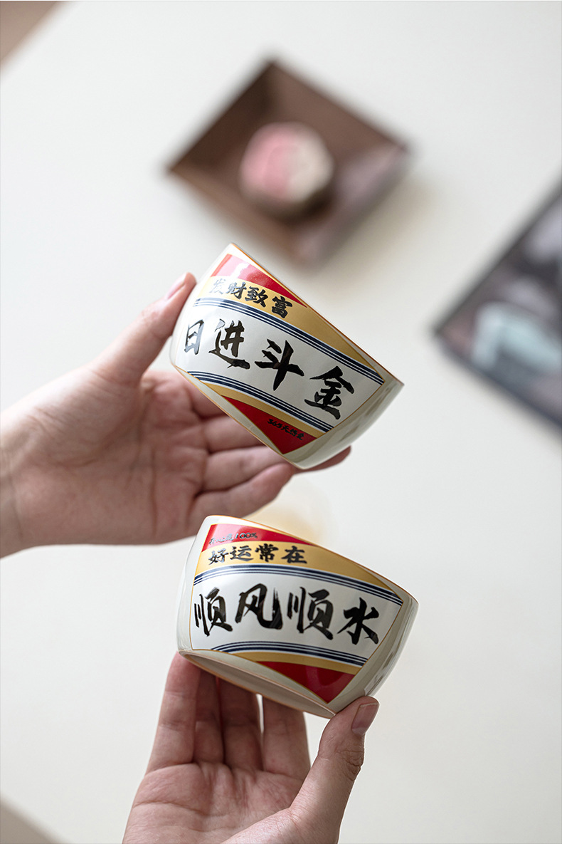 Cốc cạnh thẳng màu vàng kim loại gốm sứ dung tích lớn cốc chủ nhân đựng đồ ăn kiểu Trung Quốc gia dụng hộp quà